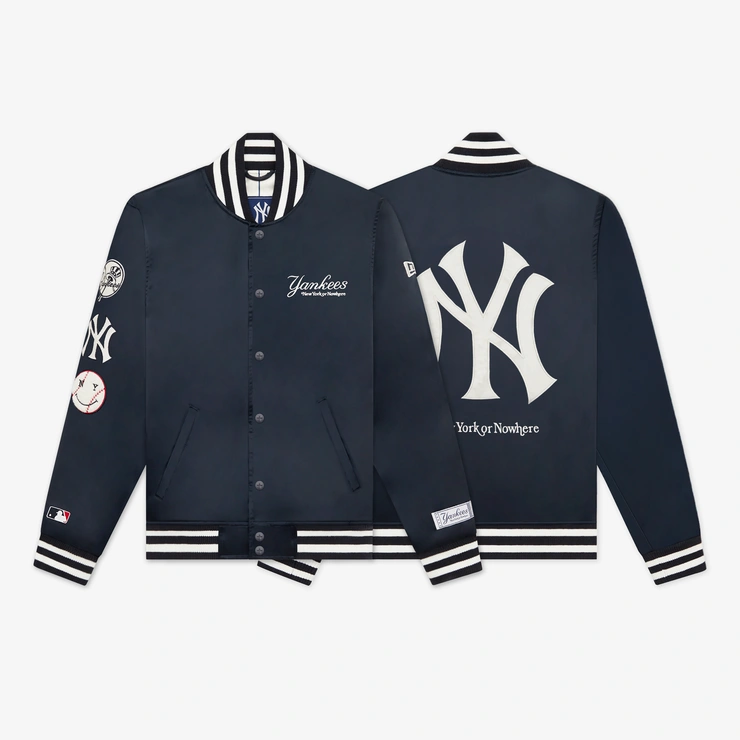 65Check out this New Era New York Yankees "New York or Nowhere" Midnight Satin Jacket! It's a stylish piece with the Yankees logo prominently displayed on the back. Perfect for showing off your team spirit!