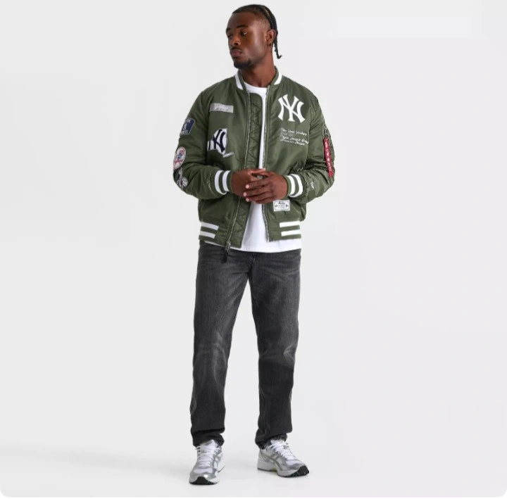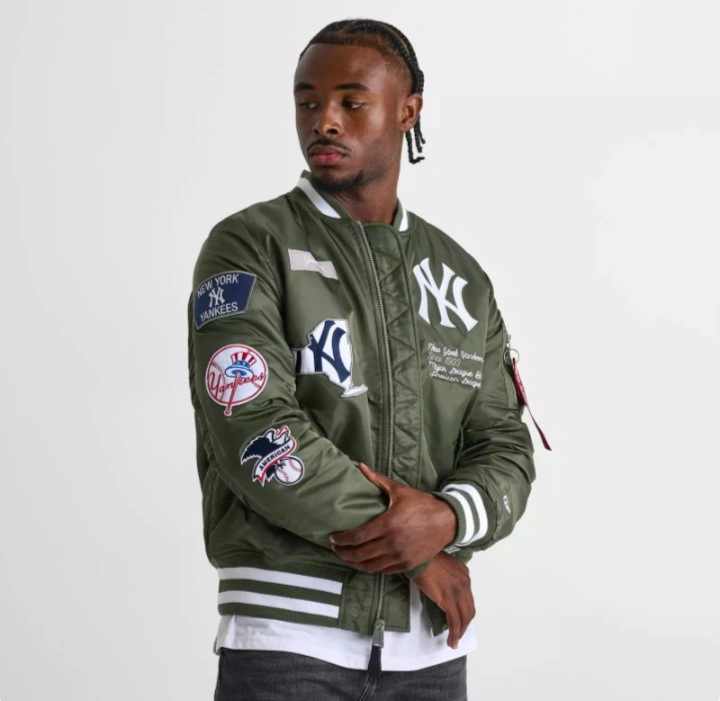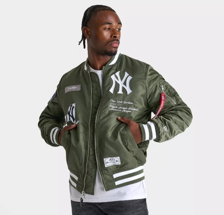 65This is a New York Yankees Alpha Industries Olive Green MA-1 Bomber Jacket. It's a stylish and comfortable jacket perfect for showing off your team spirit. Originally bought for $249.99