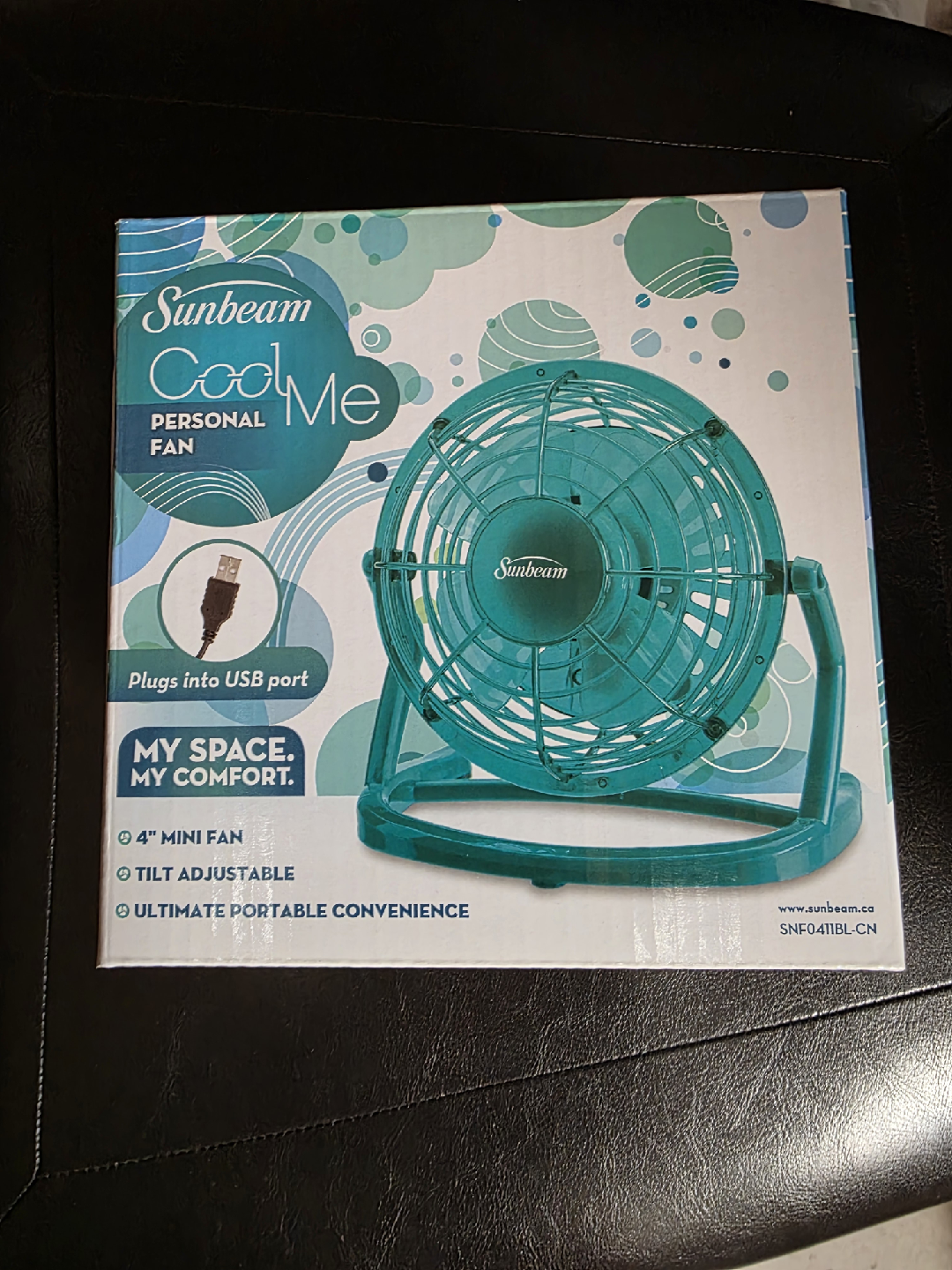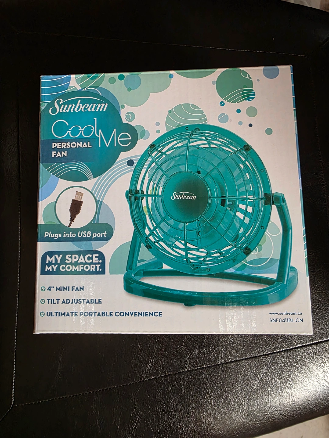 Selling a brand new Sunbeam Cool Me personal fan! It's a 4" mini fan that plugs into a USB port. It's also tilt adjustable for ultimate portable convenience. Perfect for your space and your comfort!