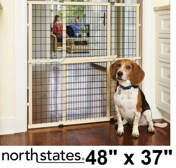 Keep your furry friends safe and secure with this Extra Tall & Wide Wire Mesh Pet Gate, designed to fit openings from 29" to 48" wide and standing 37" tall. This gate is perfect for larger breeds or pets that like to jump!