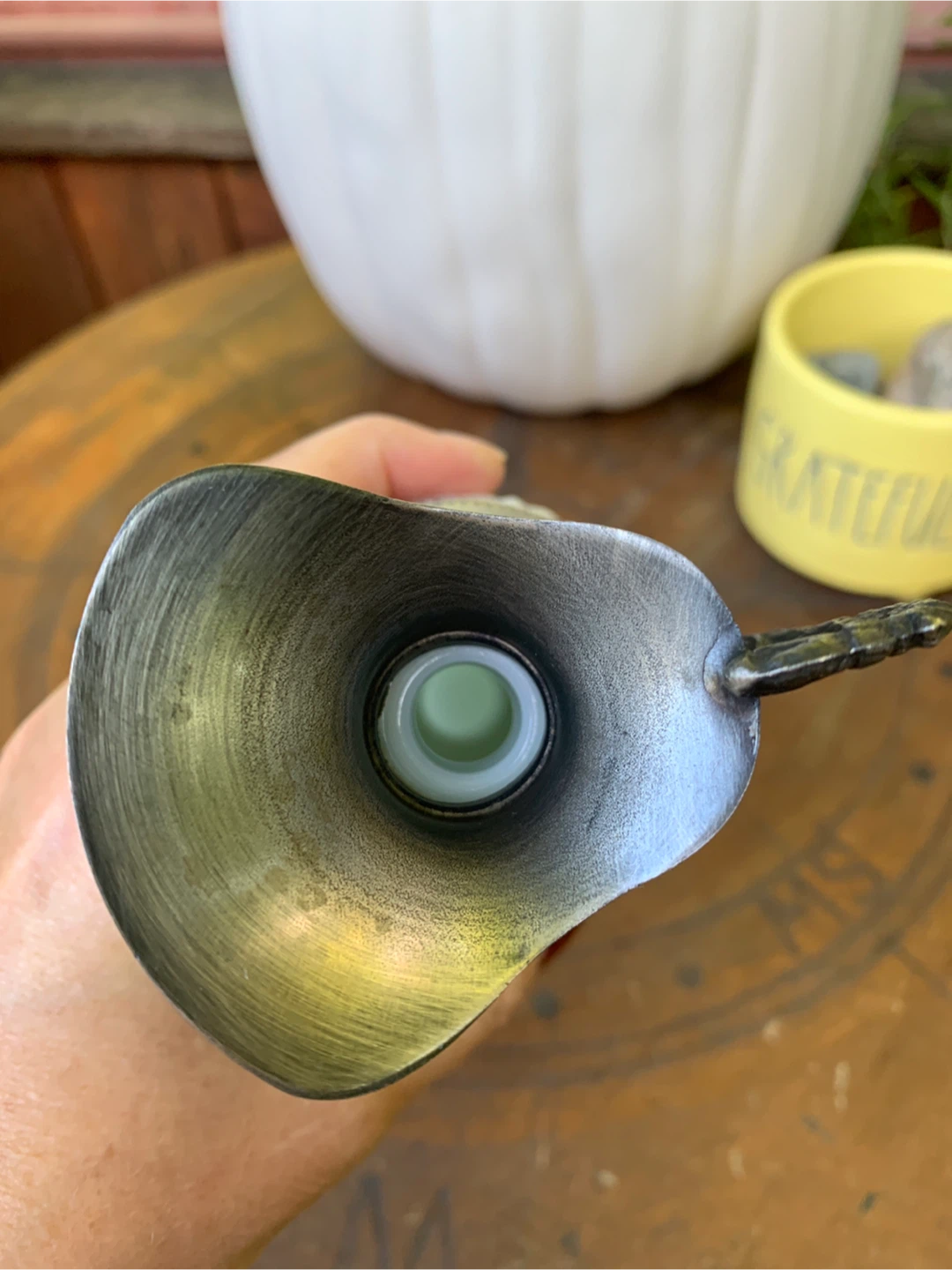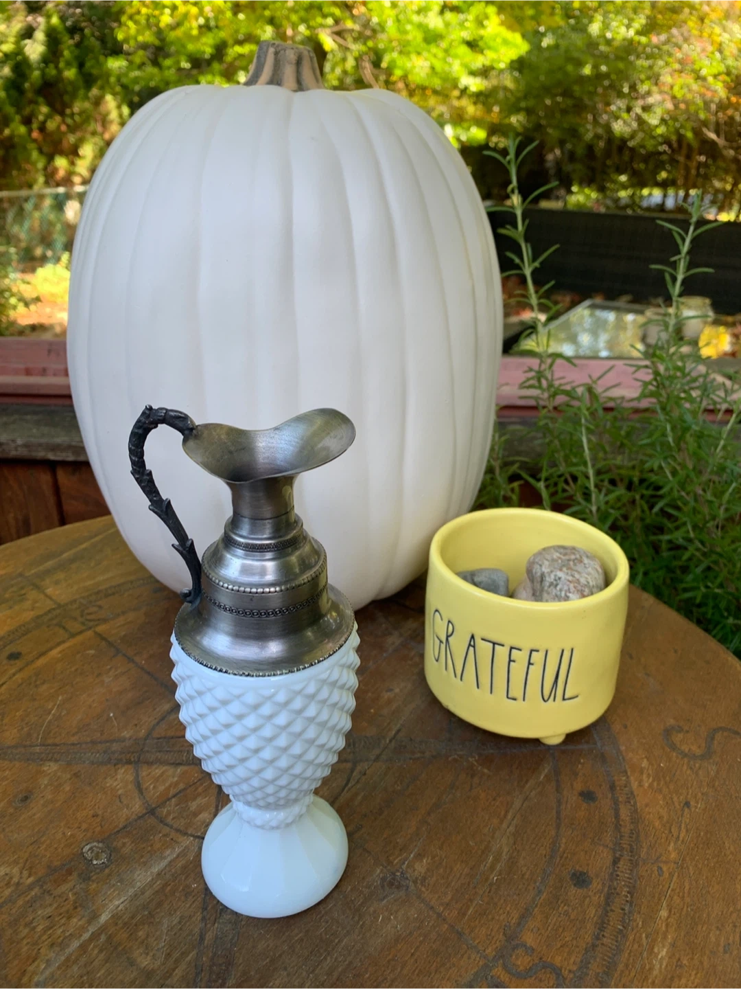 Vintage Milk Glass Pitcher with Metal Handle