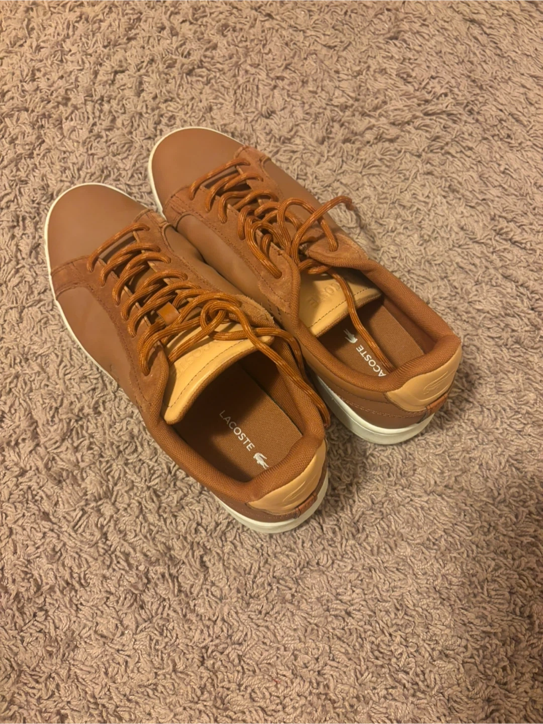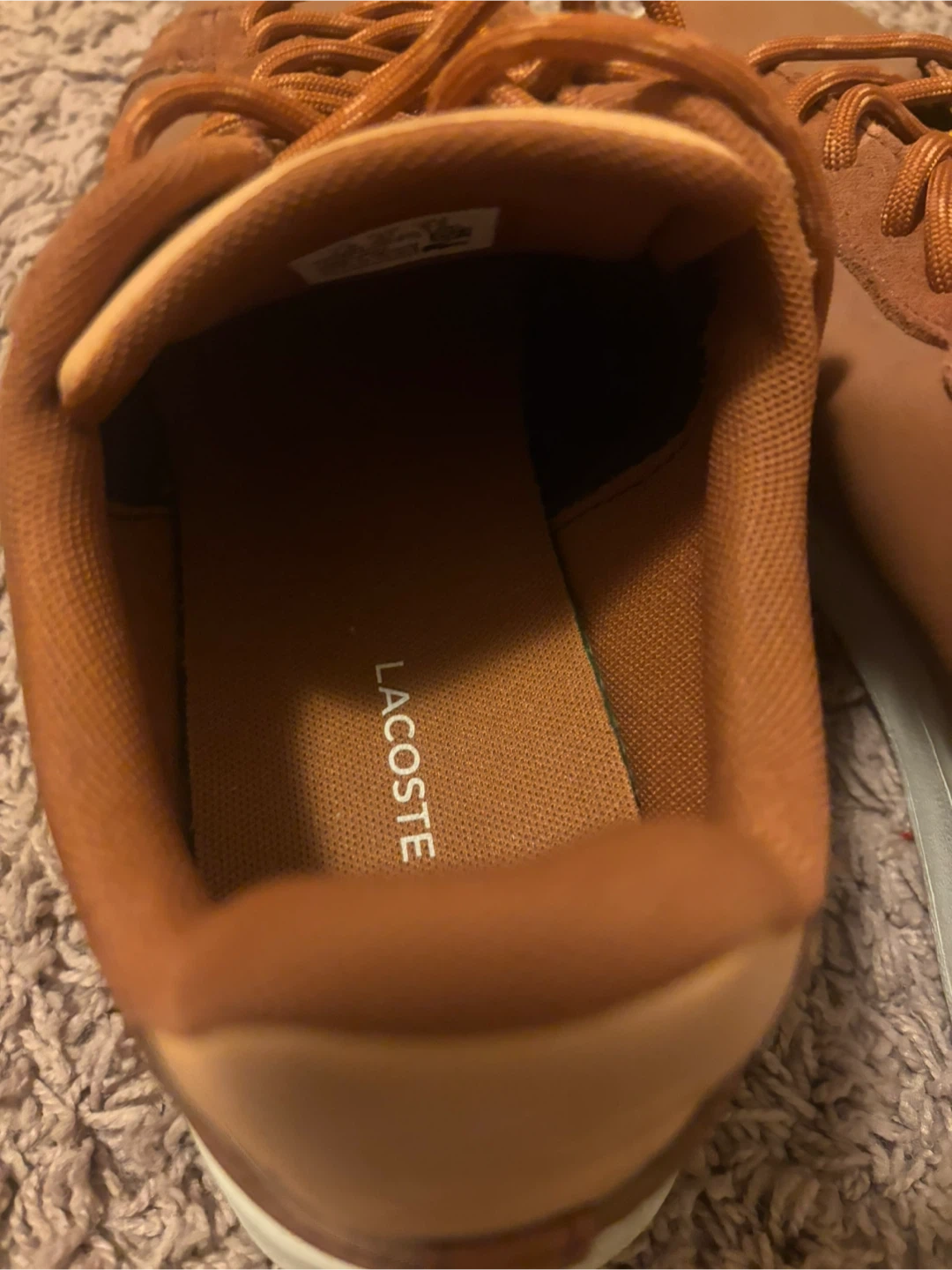 Stylish Lacoste shoes in a lovely brown/cream colour! These shoes are in great condition and ready for a new home. Perfect for adding a touch of class to your casual outfits!, leather with a touch of suede