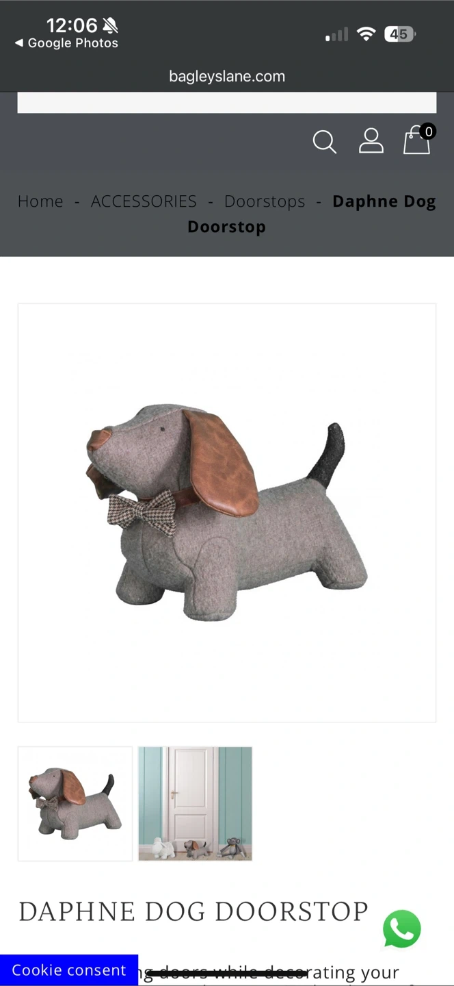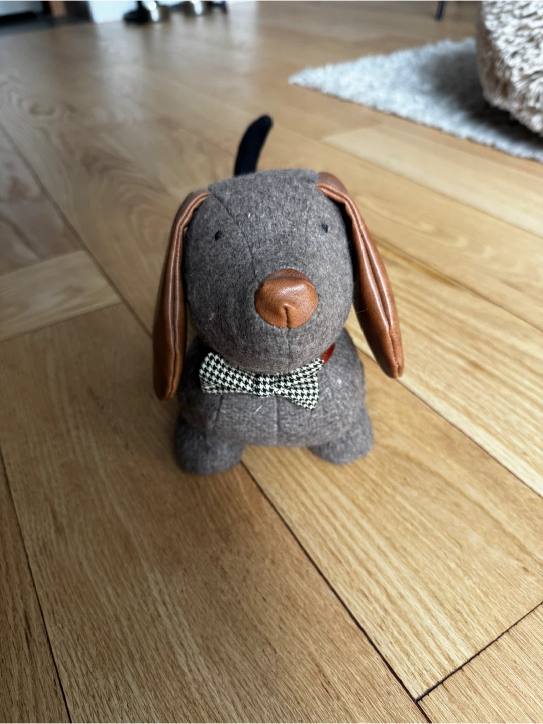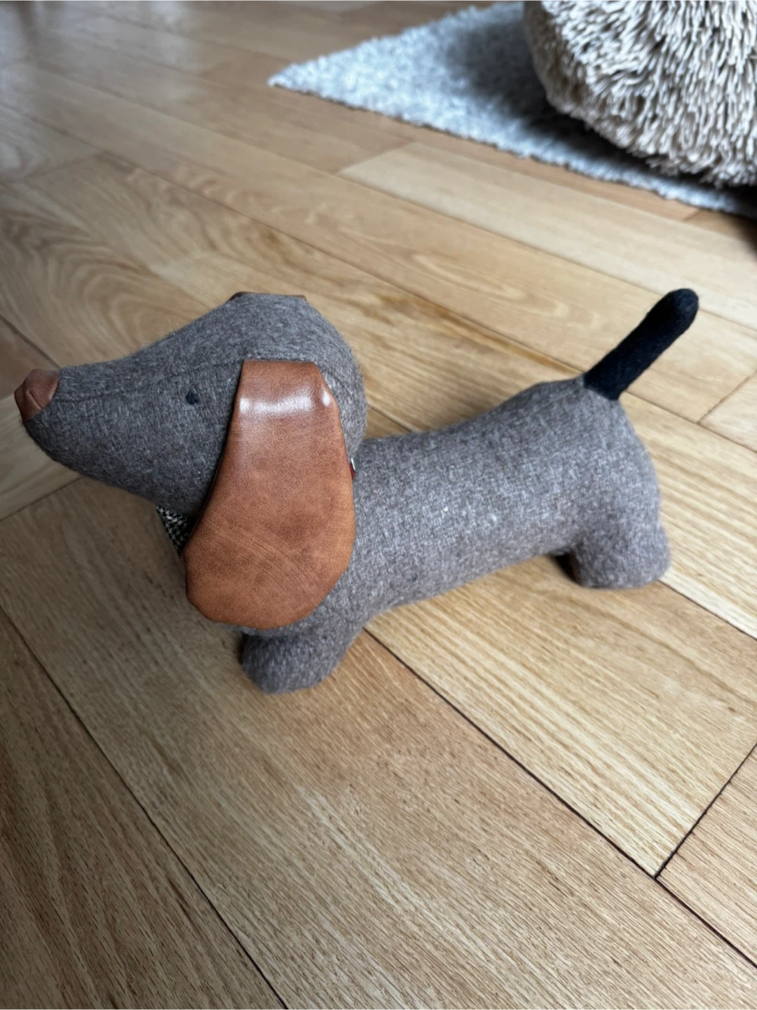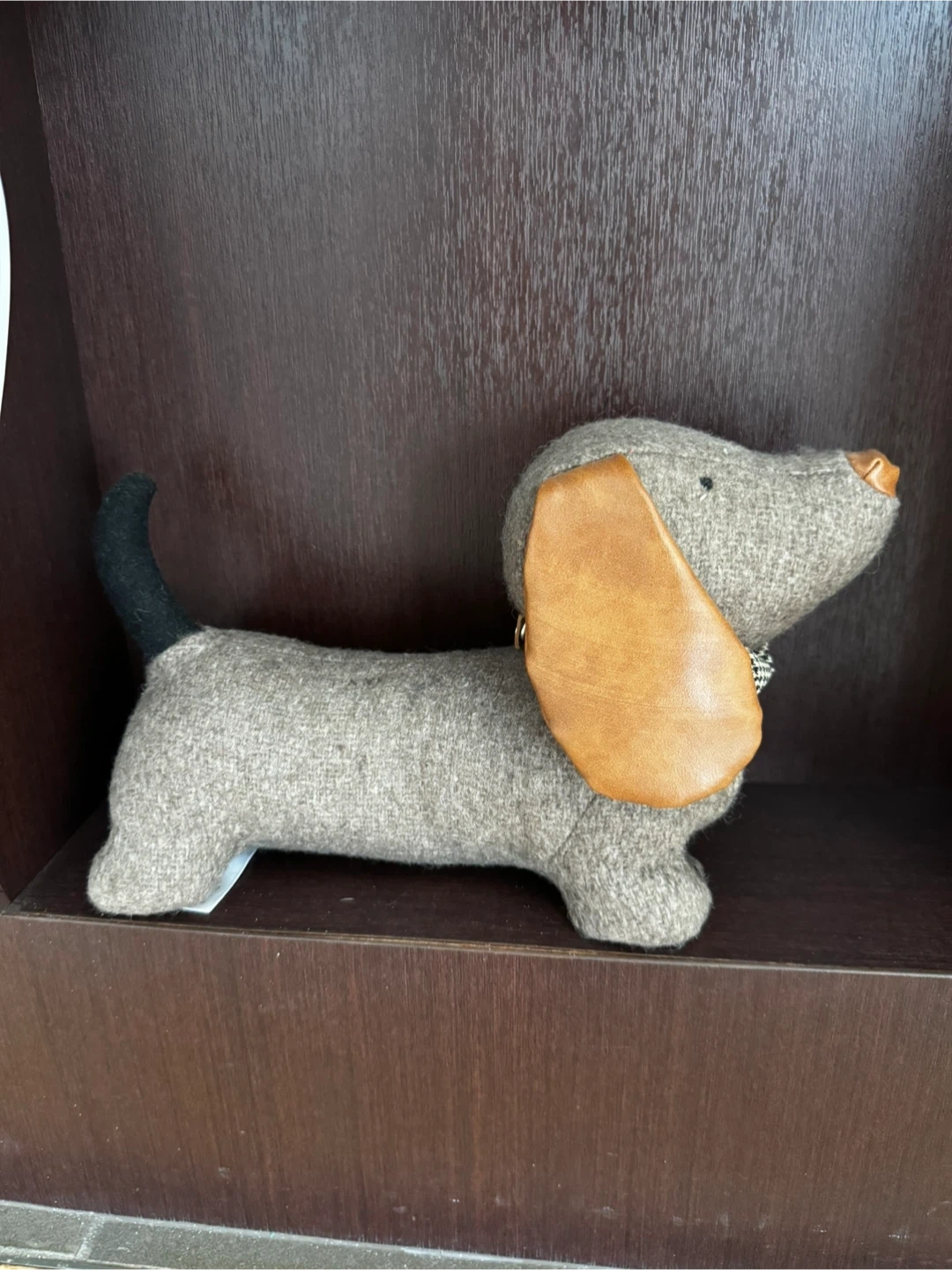 10This is a cute Daphne Dog Doorstop from Bagley & Sloane. It's in great condition and ready to hold your door open in style! The doorstop is shaped like a dachshund with brown ears and a bow tie.