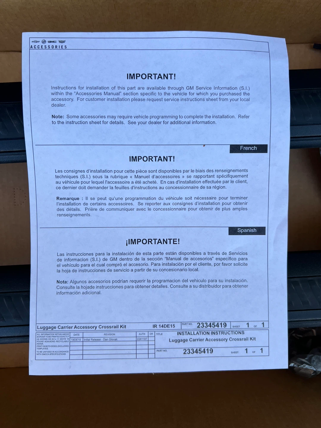 GM Motors Luggage Carrier Accessory Crossrail Kit