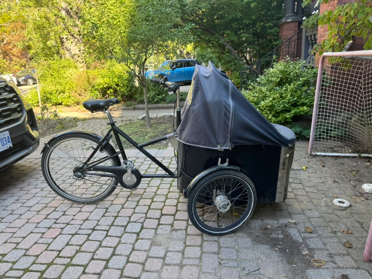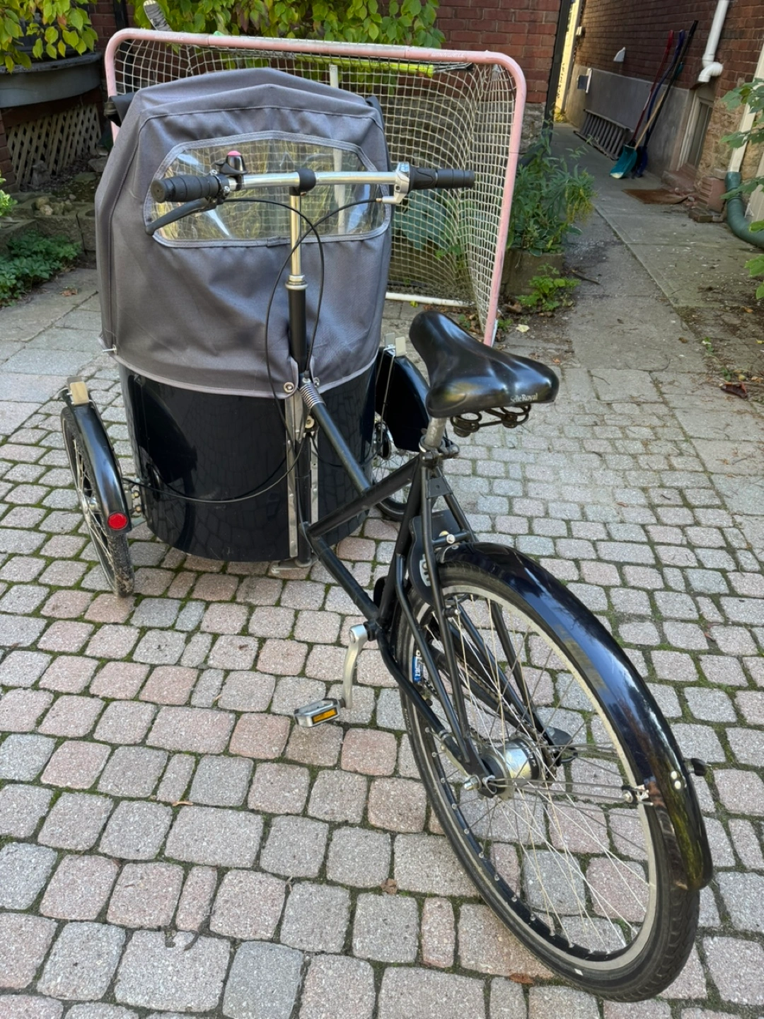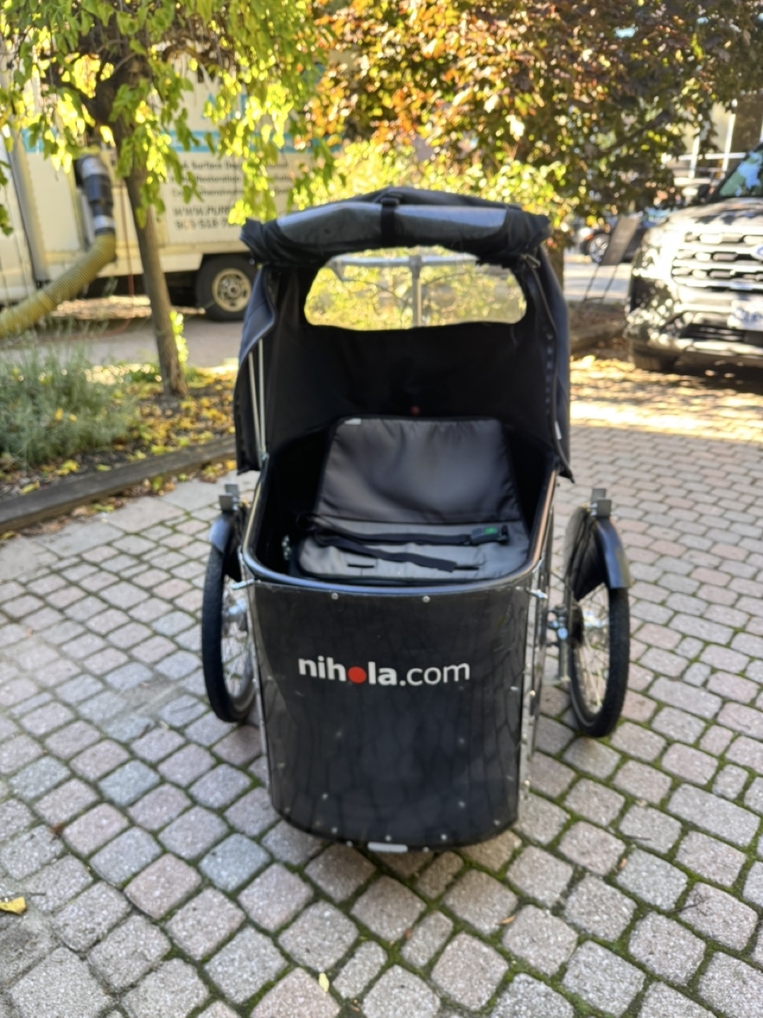 Selling a Nihola cargo bike. It's in good condition and ready for family adventures or hauling cargo around town! The bike features a distinctive three-wheel design with a spacious front cargo box, perfect for carrying kids or groceries. It has 5 gears.