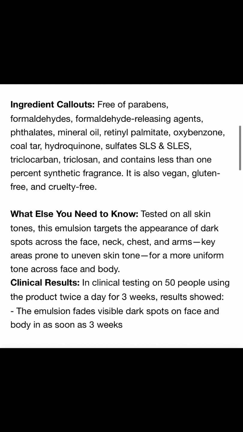 ✨NEW IN PACKAGE Brand: The Ordinary - 100ml From Sephora. 🌿Vegan, Silicone free, Alcohol free, Gluten free, Cruelty free. A lightweight emulsion for face AND body, to help even out the appearance of skin tone and reduce appearance of dark spots. Purchased for $15.40+ Tax = $17.40.