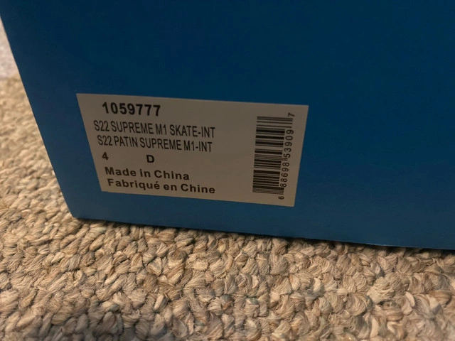 Selling S22 supreme m1 skates for junior hockey. Used 3 times, in great condition. Length 4.0 Width D. Let me know if you're interested!