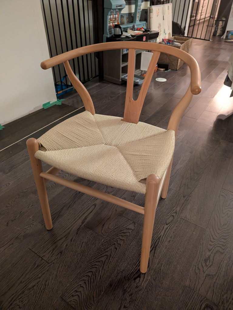 1 wishbone chair. bought to test out the style but missed the return window. like new condition. pick up at Danforth/Greenwood