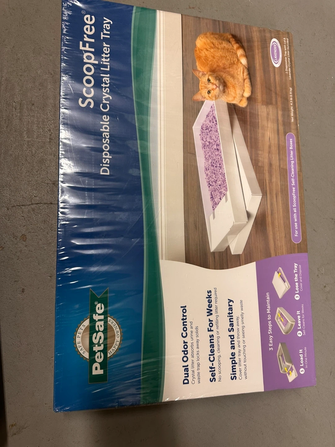 Selling a PetSafe ScoopFree disposable crystal litter tray! This tray offers dual odor control, absorbing urine and locking away solids with its crystal litter. It self-cleans for weeks, so no scooping, cleaning, or refilling is required. It's simple and sanitary, just cover and dispose of the tray without touching or seeing smelly waste. For use with all ScoopFree self-cleaning litter boxes
