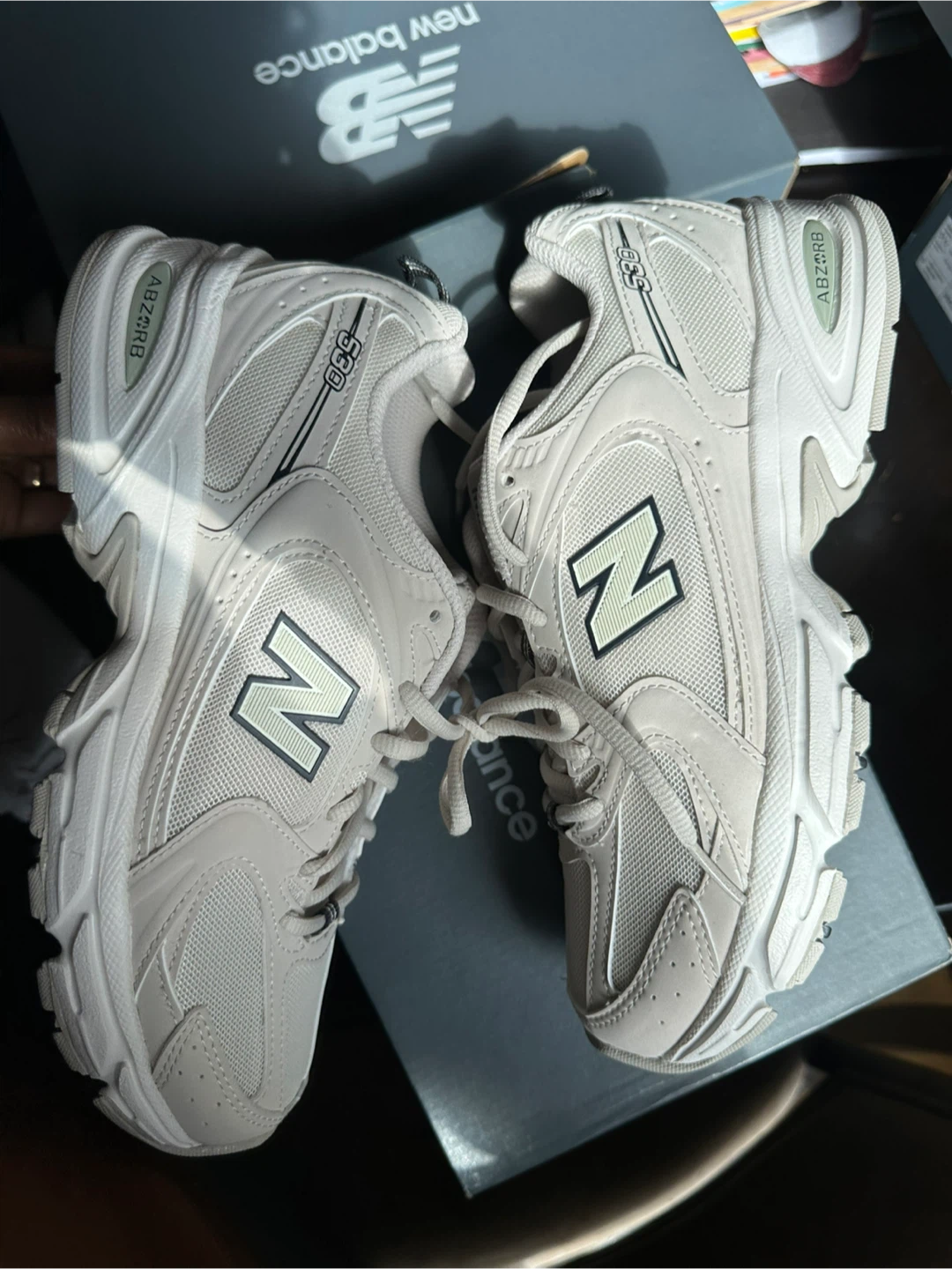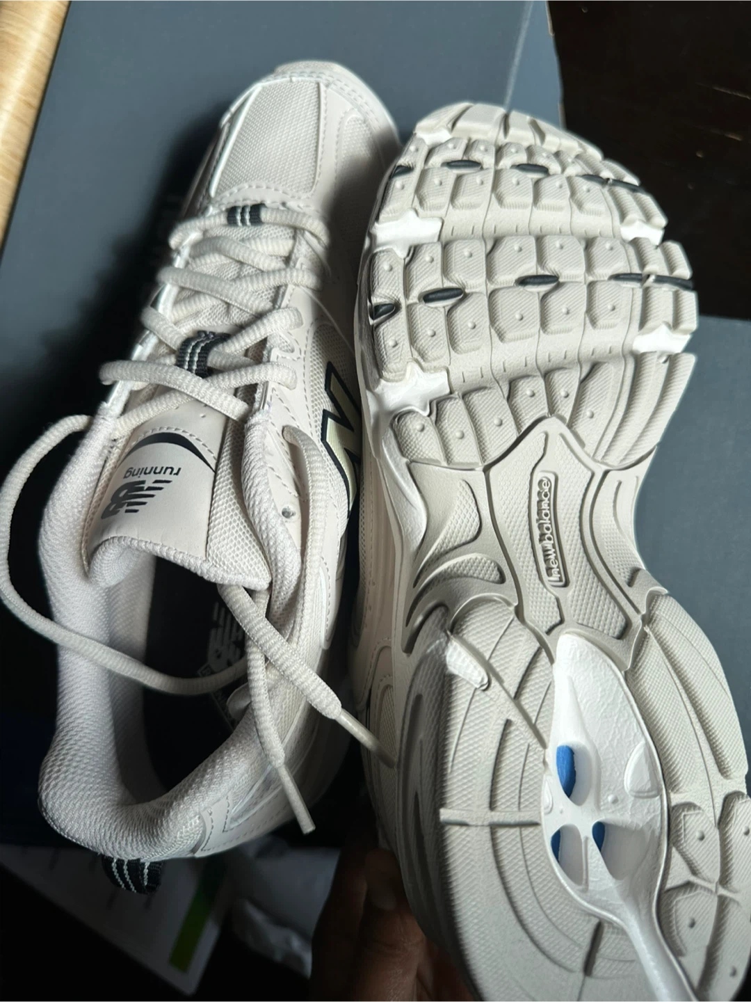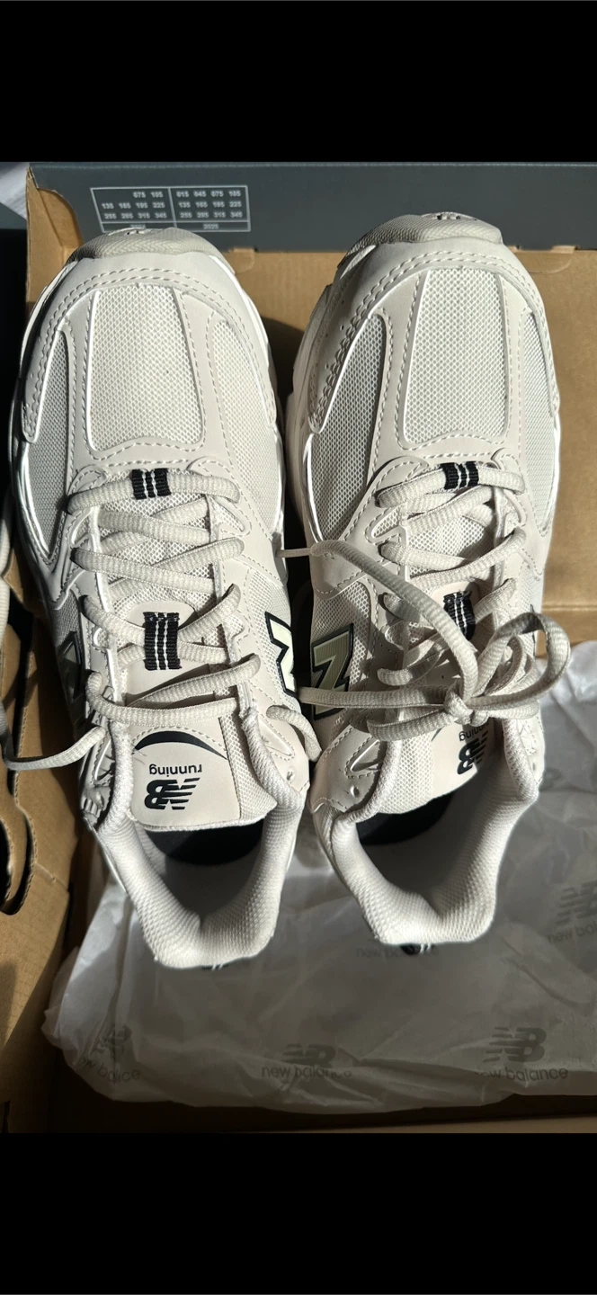 Selling a pair of New Balance 530 sneakers in beige. They are in excellent condition and come with the original box!