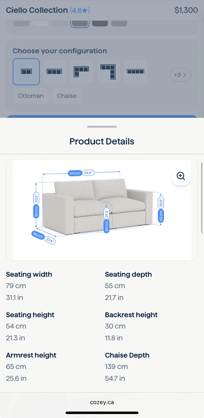 The Ciello line is modular, so you can easily rearrange it or add on more sections from Cozey down the road.