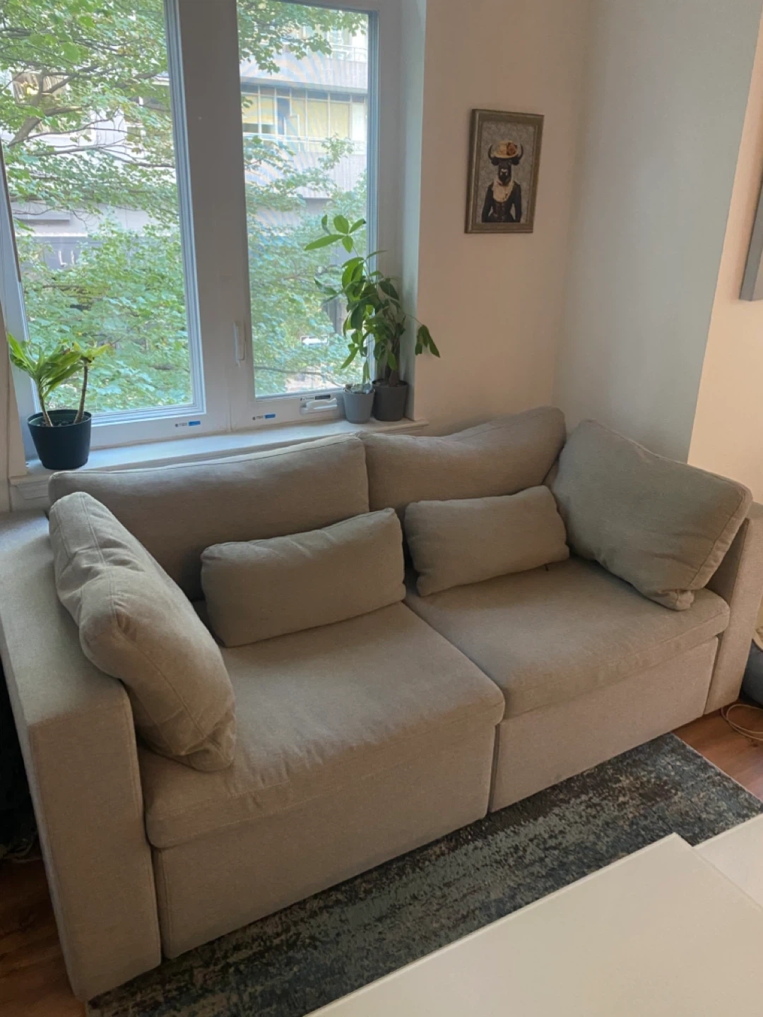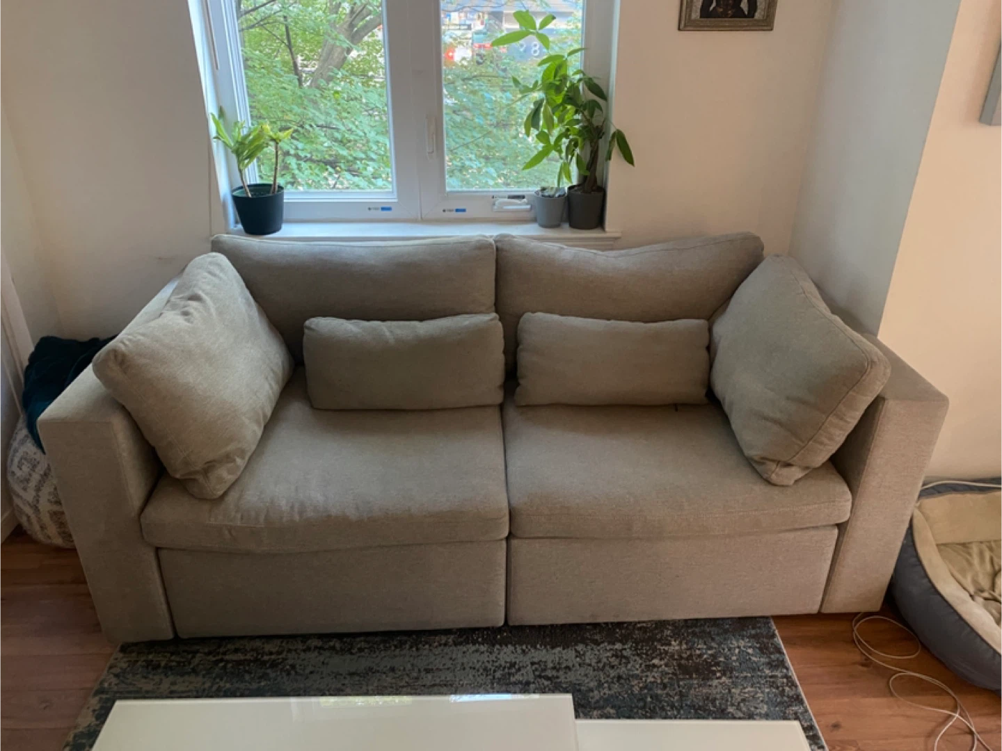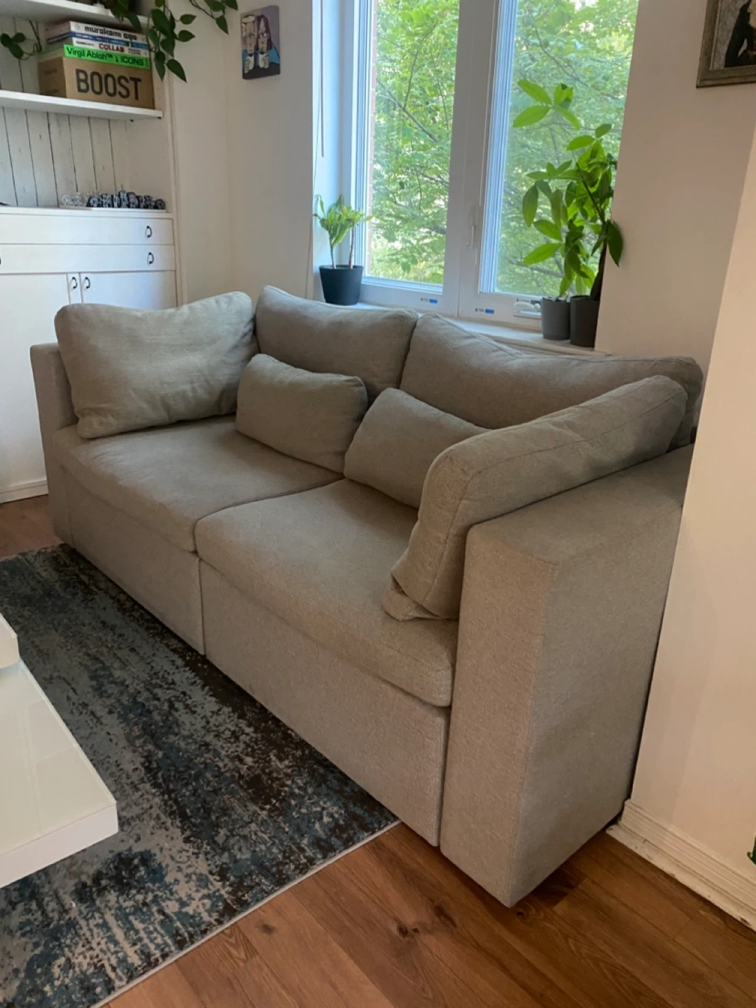 Selling a Cozey Ciello 2-seater couch in gray. It’s super comfy, modern, and in great condition!