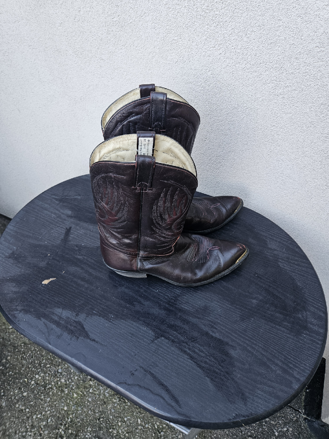 Selling a pair of brown leather cowboy boots. Canada West boots style 6955 They show some signs of wear, but still have lots of life left in them! Perfect for a Western-themed party or just adding some flair to your everyday style