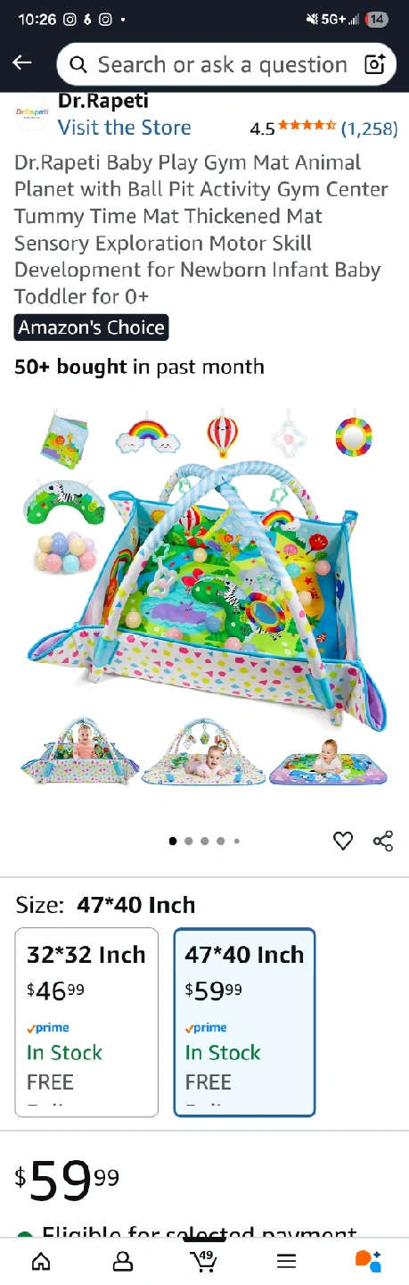 Dr.Rapeti Baby Play Gym Mat - 47x40 Inch