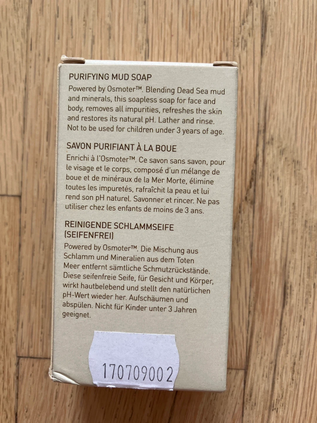 I'm selling a new AHAVA Deadsea Mud Purifying Mud Soap! This soap is powered by Osmoter and blends Dead Sea mud and minerals. It removes impurities, refreshes the skin, and restores its natural pH. It comes in its original box and contains 100g / 3.4 Oz of product
