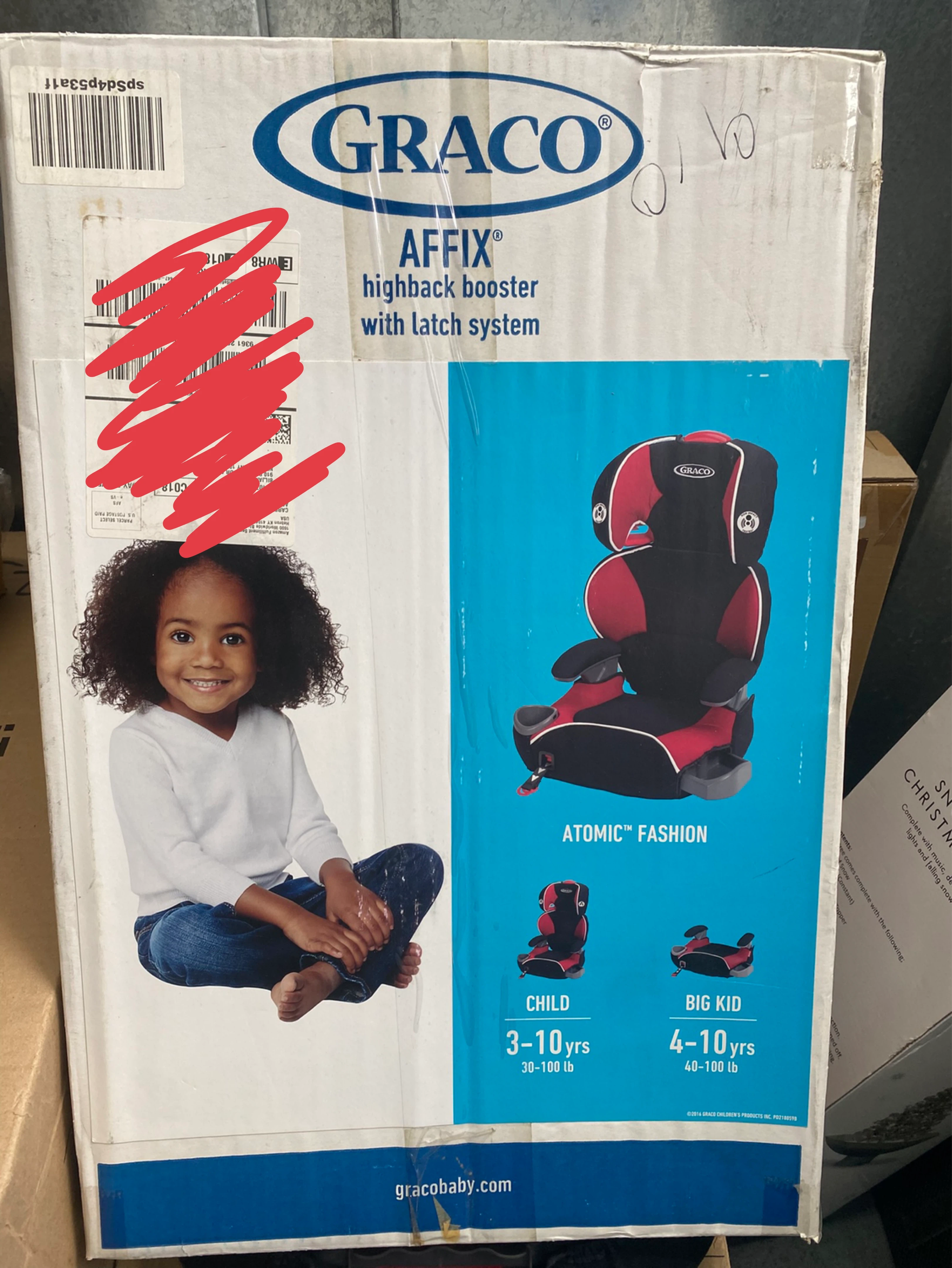 Selling a Graco Affix highback booster seat in the Atomic Fashion color. It's in great condition and ready for your child. It’s suitable for children aged 3-10 years (30-100 lb). Can be used as a highback seat, or only booster.