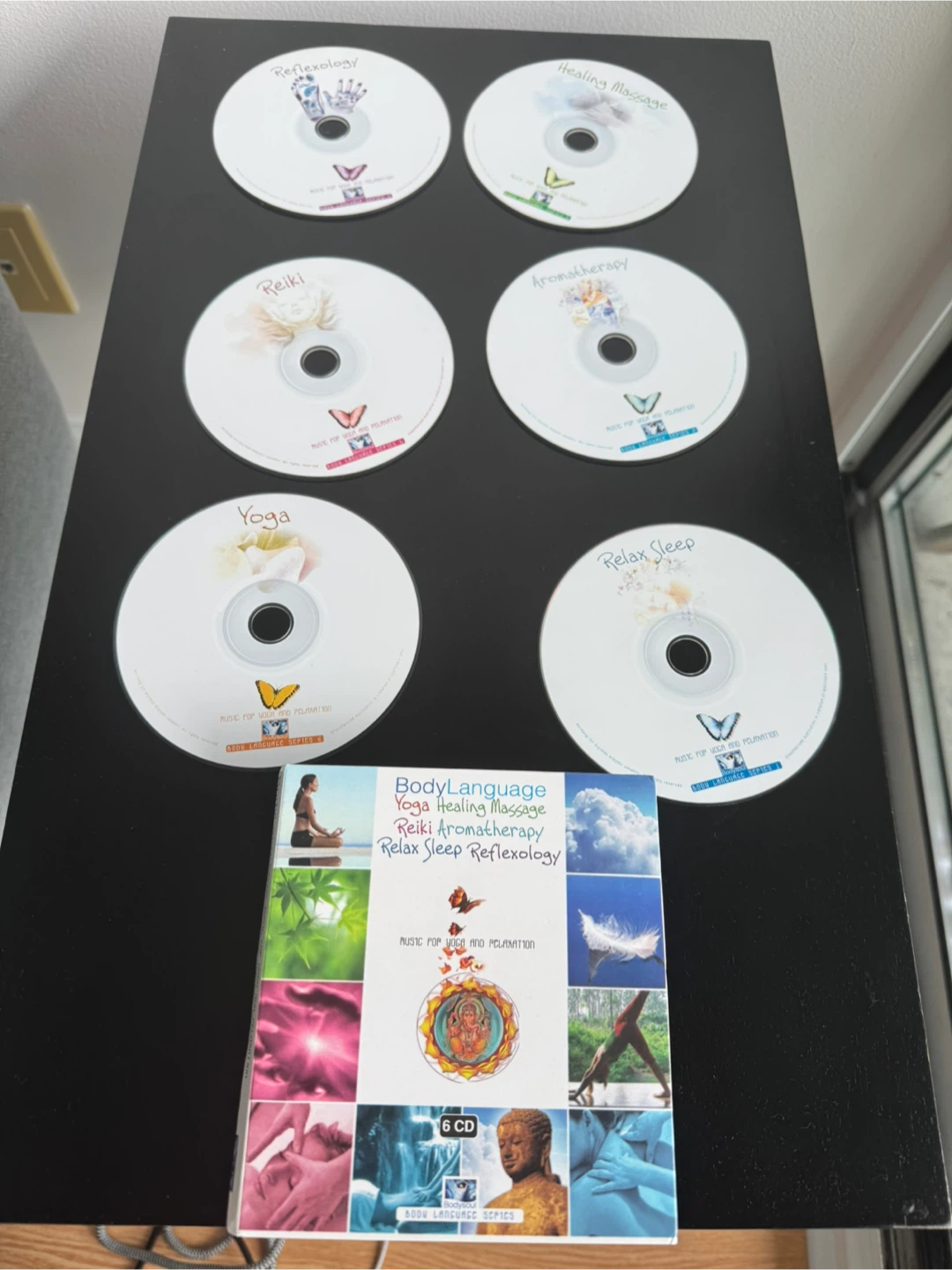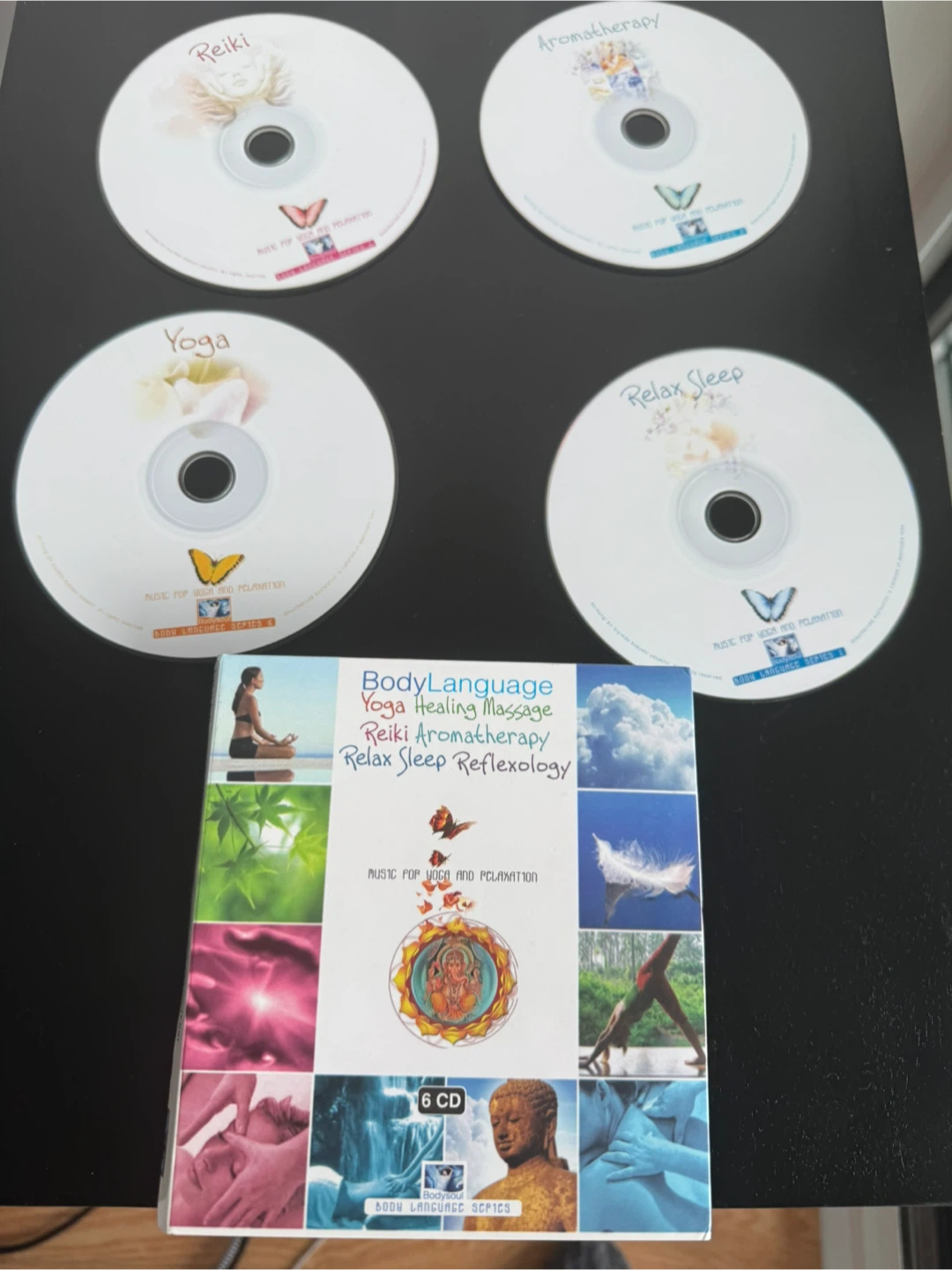 Selling a BodyLanguage series 6 CD set. It includes music for Yoga, Healing Massage, Reiki, Aromatherapy, Relax Sleep, and Reflexology. Perfect for relaxation and meditation!