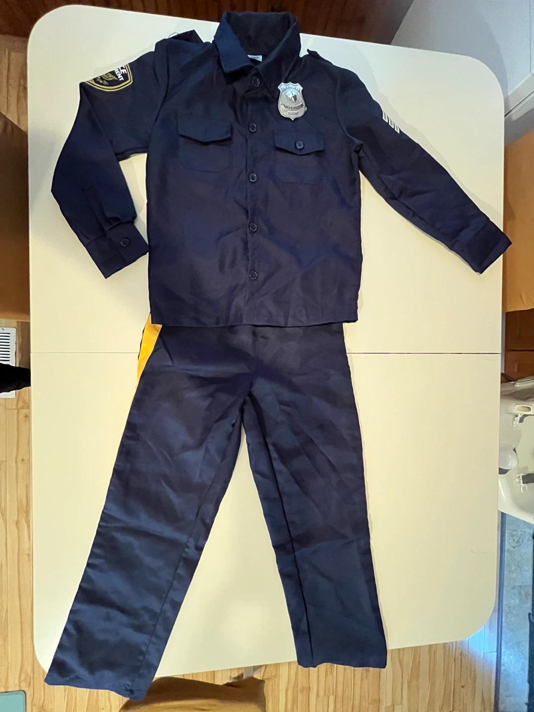 Selling a Spirit brand police costume in size medium. It's in great condition and includes the shirt, pants, and badges. Perfect for dress-up or Halloween!