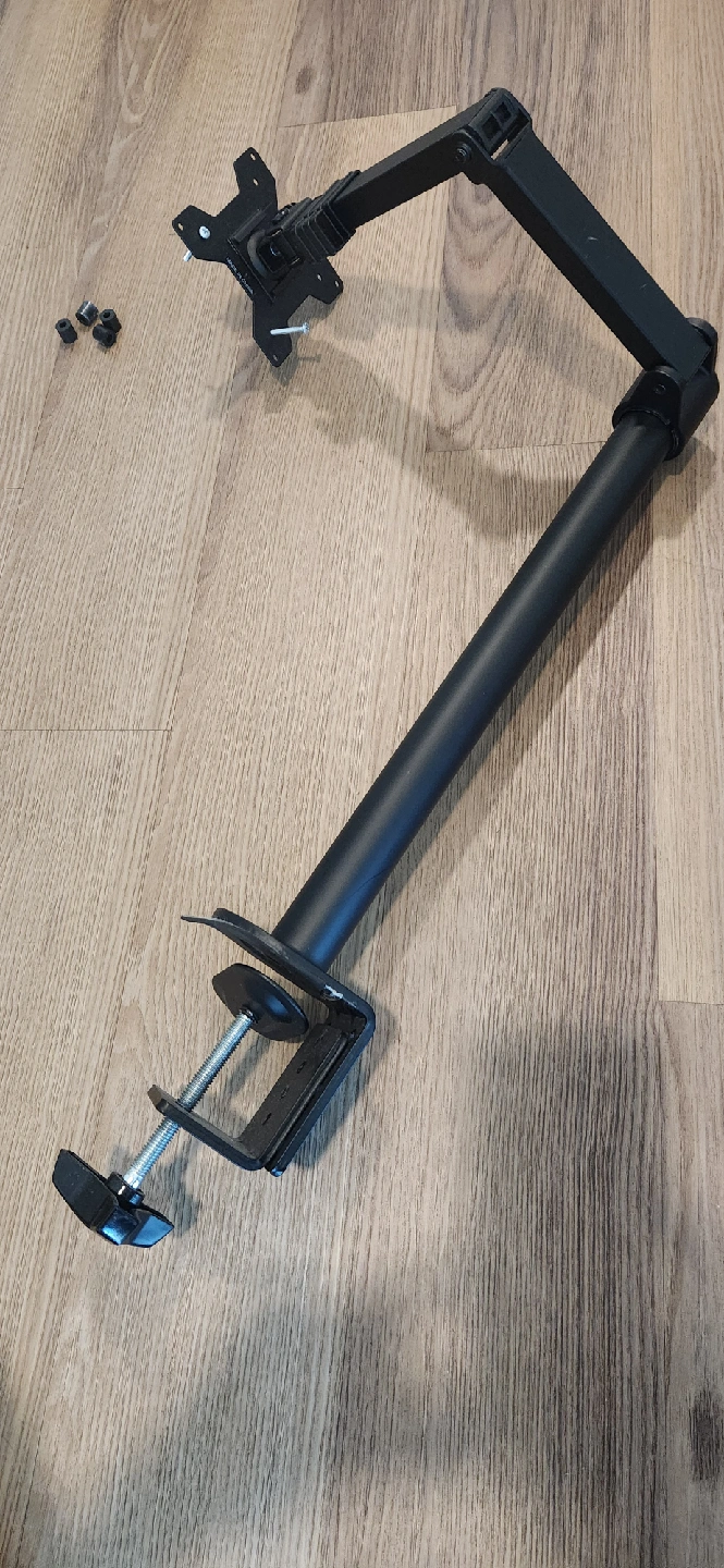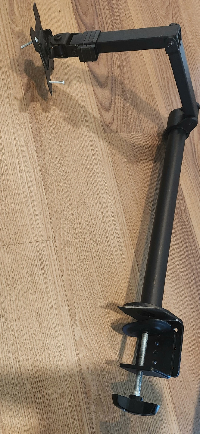 Selling a black monitor arm desk mount. It's in good condition and ready to help you optimize your workspace!