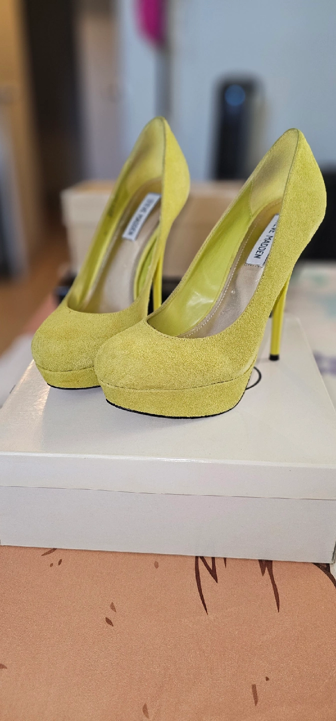 Buy & SellSteve Madden Yellow Suede Heels, Size 10Steve Madden Yellow Suede Heels, Size 10FreeFree pair of Steve Madden heels in a vibrant yellow suede! They are a size 10 and come with the original box. π₯π₯#freeConditionGoodWHERE TO MEETRego CenterView MapSELLERverifiedEvelynCorona1628 reviews2 chatsΒ·0 favoritesΒ·22 viewsSEND CHAT TO SELLERHi Evelyn! Iβm interested in your listing.Hi Evelyn! Iβm interested in your listing.Get the Karrot app to chatSign In to chat