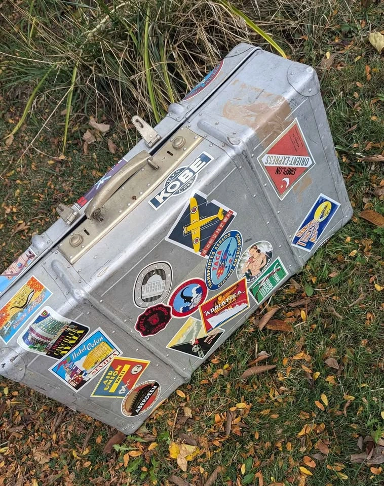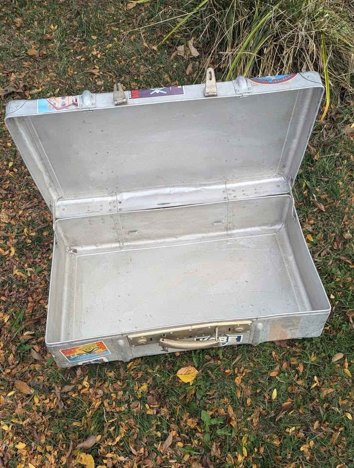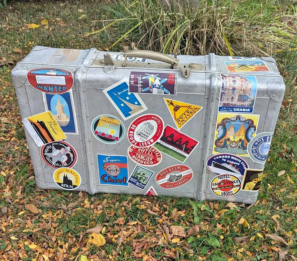 Vintage Aluminum Suitcase with Retro Travel Stickers