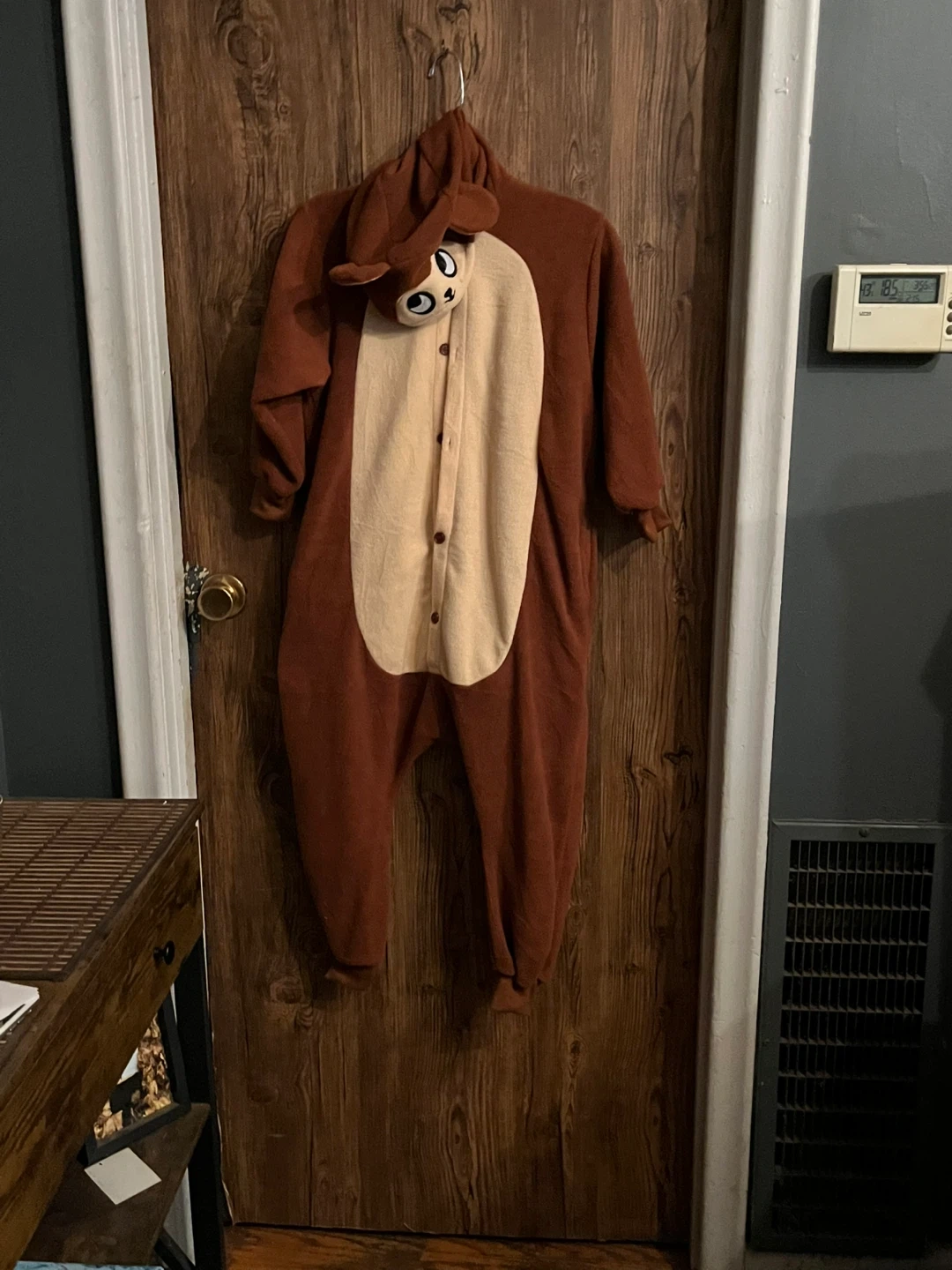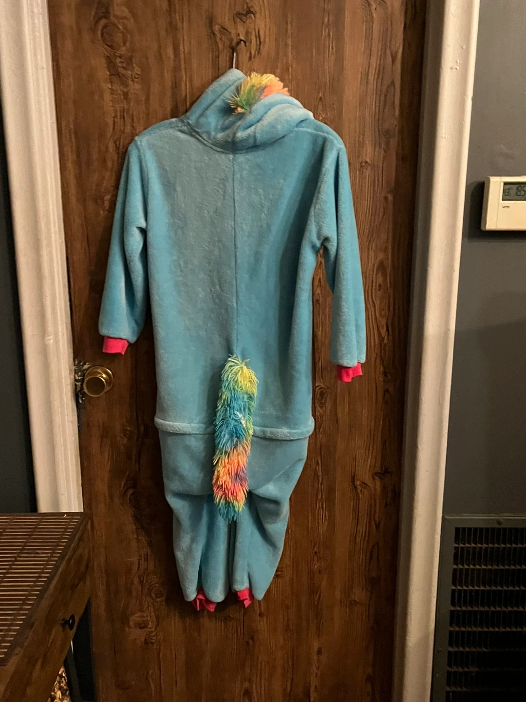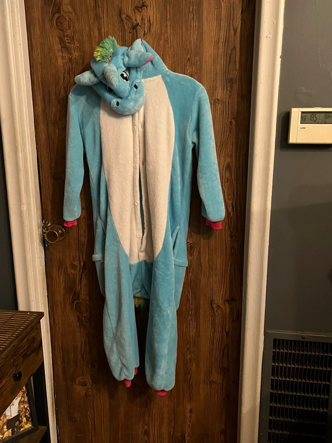 Selling a bunch of animal onesies! Styles include a brown bear, blue unicorn, giraffe, another unicorn, and a tiger. Perfect for lounging around the house or a fun costume party $7 each