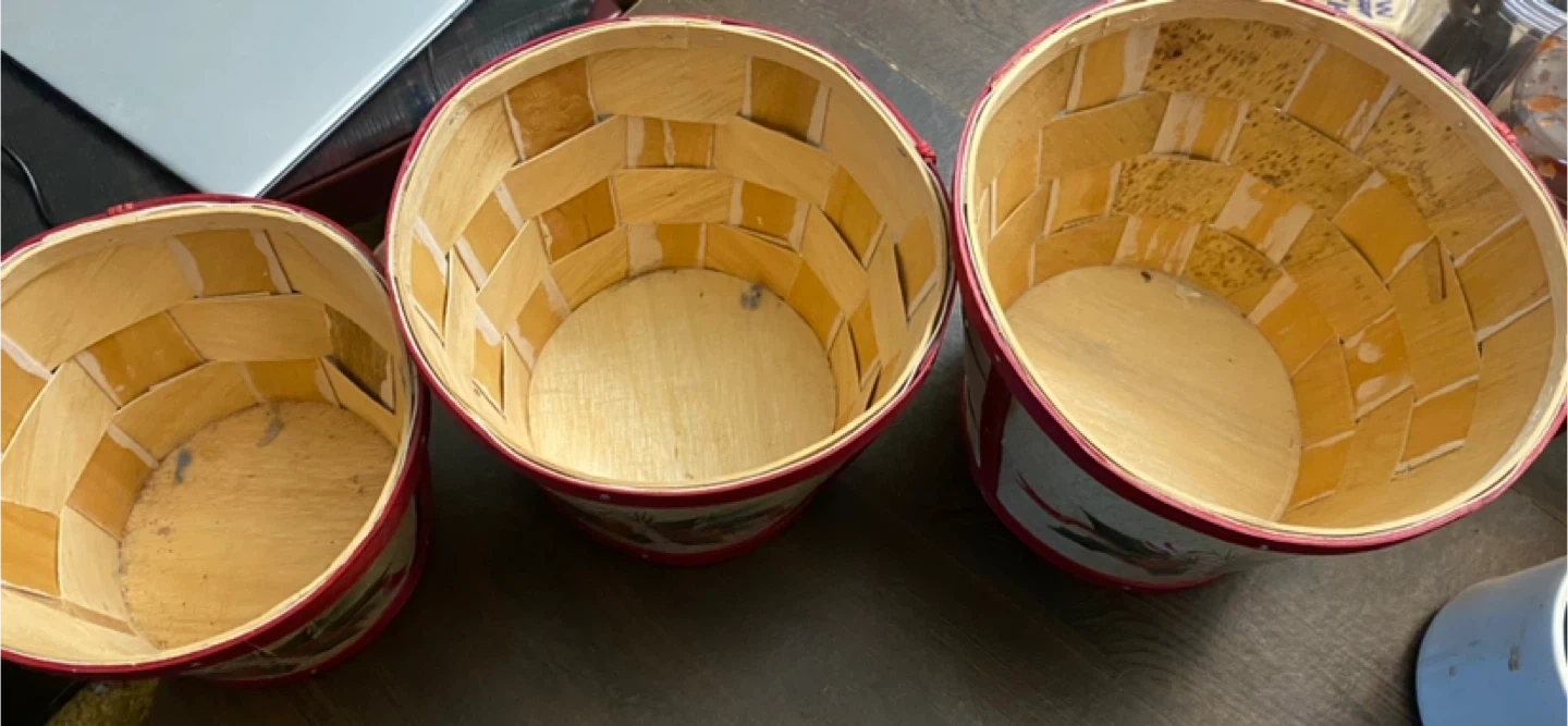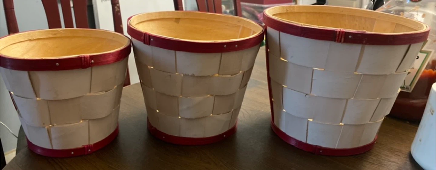 Selling a set of three decorative baskets, perfect for the holiday season! They feature a festive Christmas design with candy canes, bells, and holly. They're in new condition and would be a great addition to your holiday decor