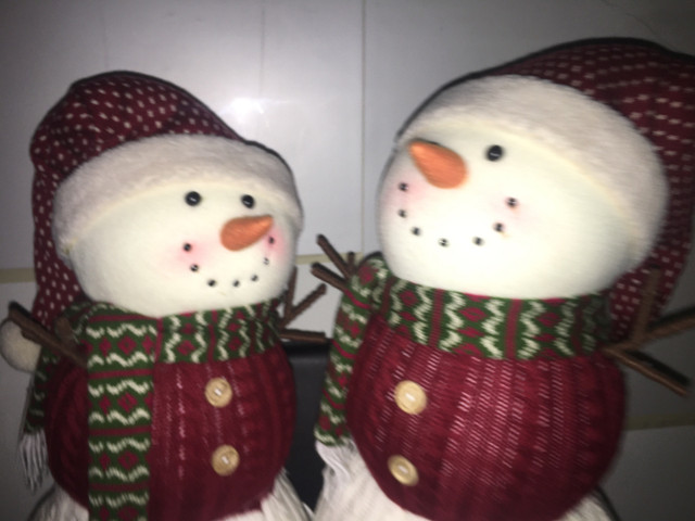 Add a touch of winter charm to your home with these adorable snowman decorations! These delightful snowmen are made from soft, cozy materials, perfect for adding a festive touch to any room. They are in excellent condition and ready to bring joy to your holiday decor. Key features: * Festive design with traditional snowman details * Soft and cozy materials for a warm, inviting feel * Perfect for adding a touch of winter charm to any room If the ad is up, they're still available, ready to bring some winter magic to your home.