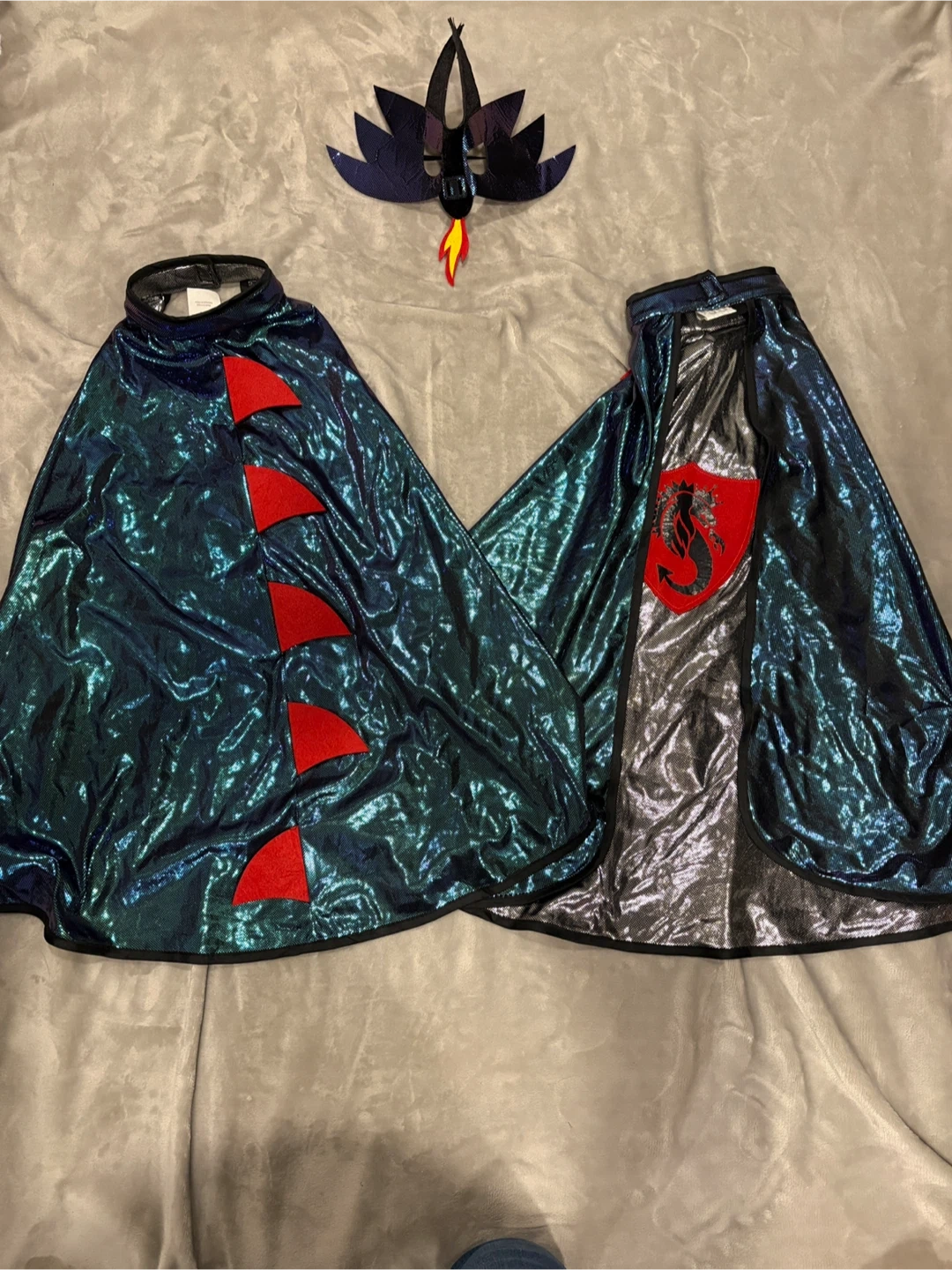 Do you need to add to your dress-up box. Here you will find a witches costume, dragons feet, wings, two different capes and a set of hard plastic claws (that can fit up to a small adults hand).