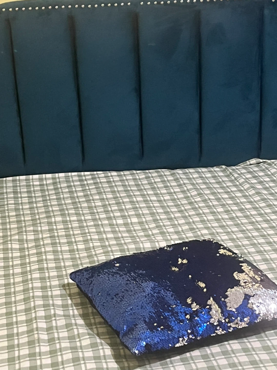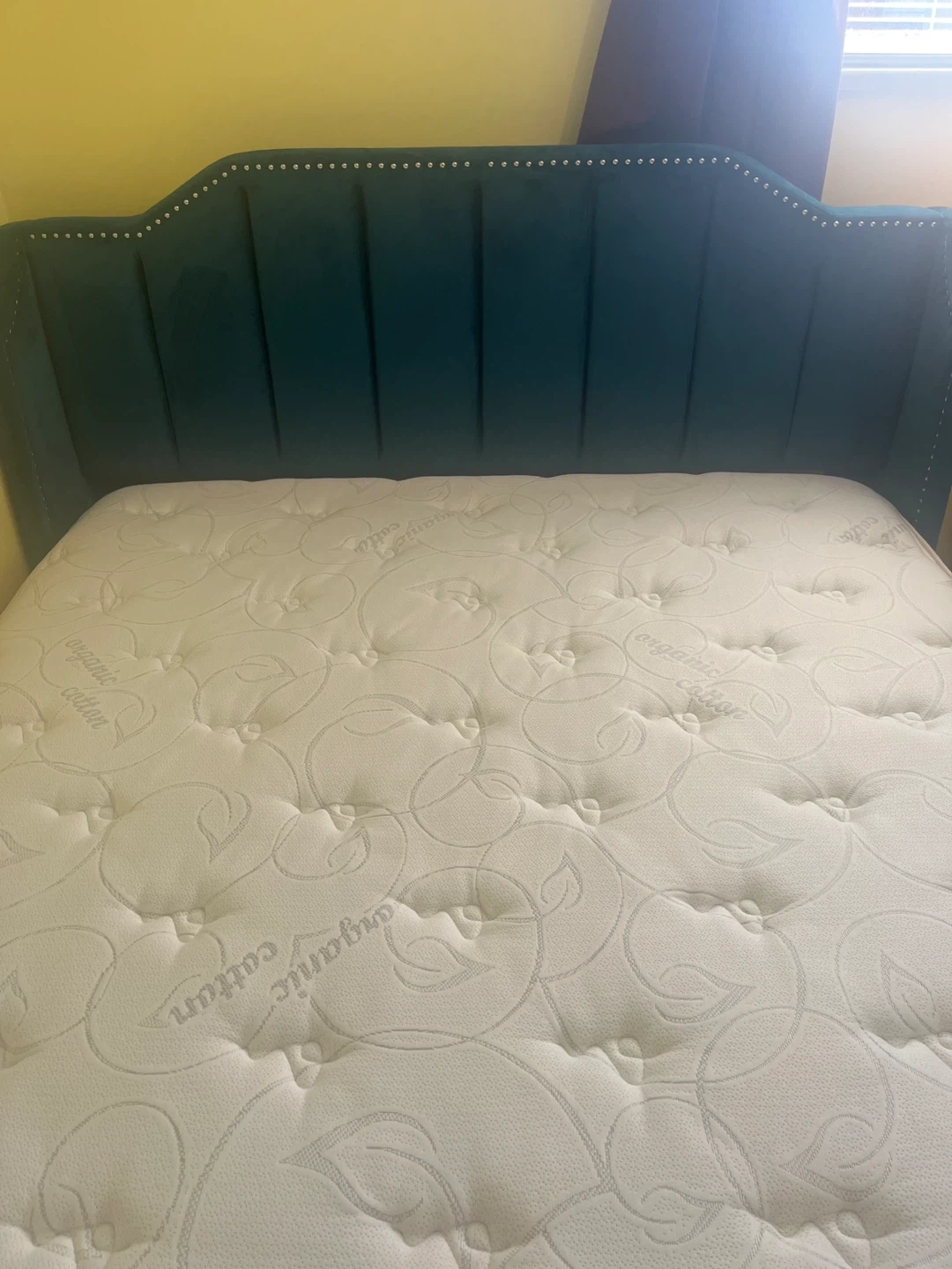 Teal Velvet Headboard bed with mattress