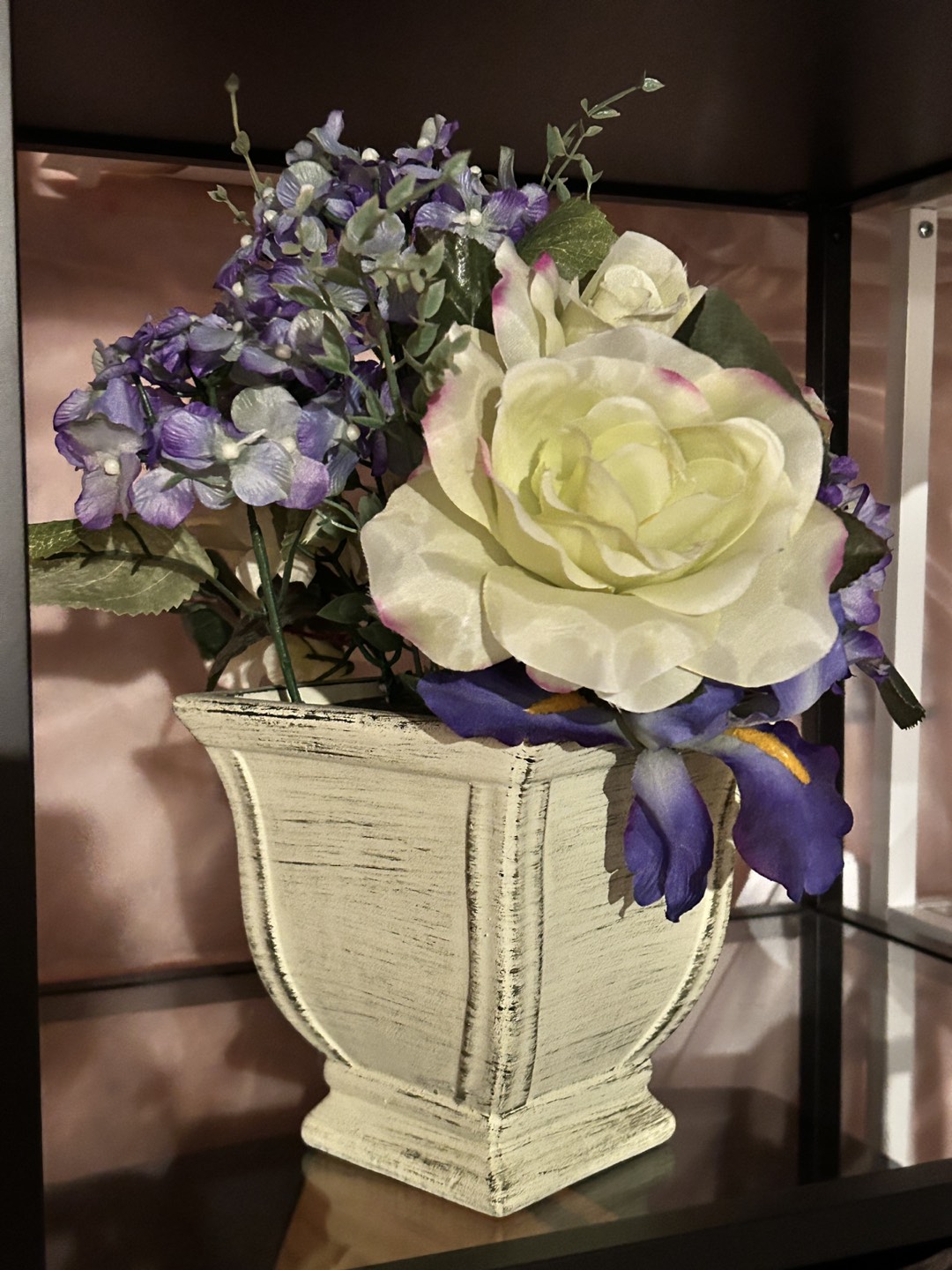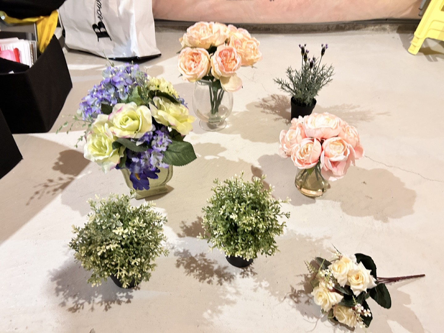 Artificial flower pots bundle. glass base included. Can be bought separately. Each is $10. When buying all together is negotiable