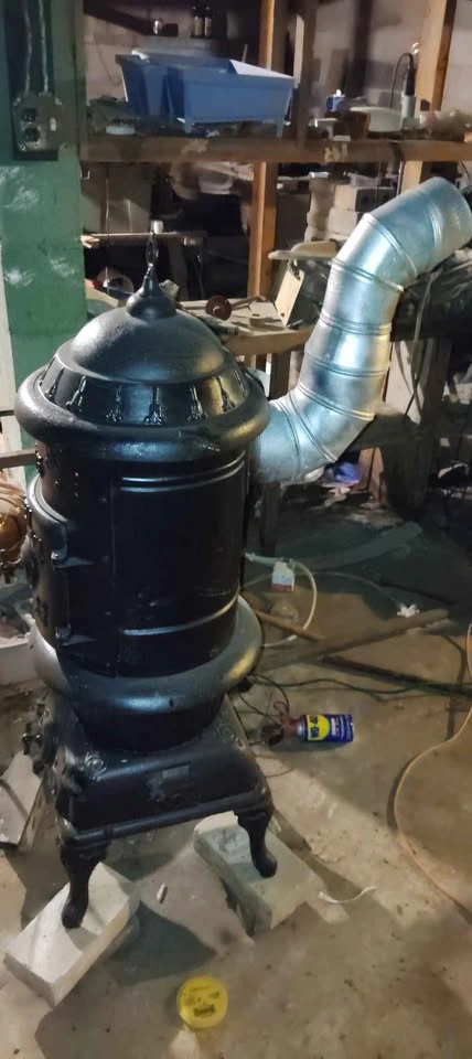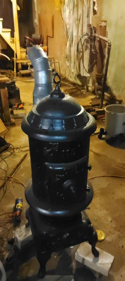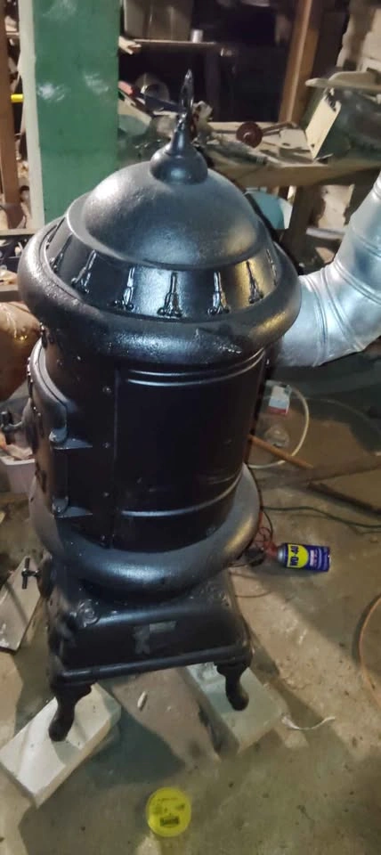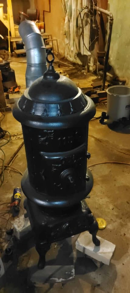 This early 1970's parlor stove with venting pipes will cozy up any room in, or out of the home. Use it in the house, or put it out on the deck (with proper safety precautions taken of course π₯π) or in the garage for those late in night auto π projects. It has all the accessories, rack, handle for top plate, top plate, and piping. This stove has been refurbished Painted and protected. With heat safe paint used, this stove is a great addition to any home. (will accent the stove for $75). Spruce up your space with this vintage 1970's parlor stove today! π