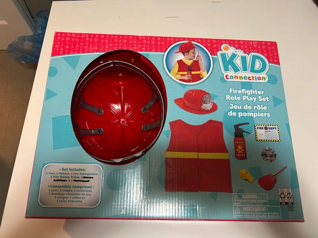 Ignite your child's imagination with this Kid Connection Firefighter Role Play Set! This set is new and includes a helmet, vest, fire extinguisher, and a walkie-talkie. It's perfect for dress-up and imaginative play, letting your little one feel like a real hero.