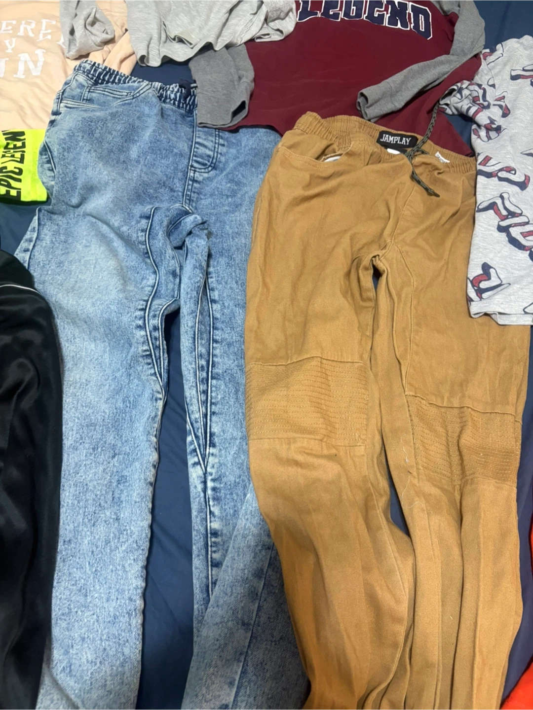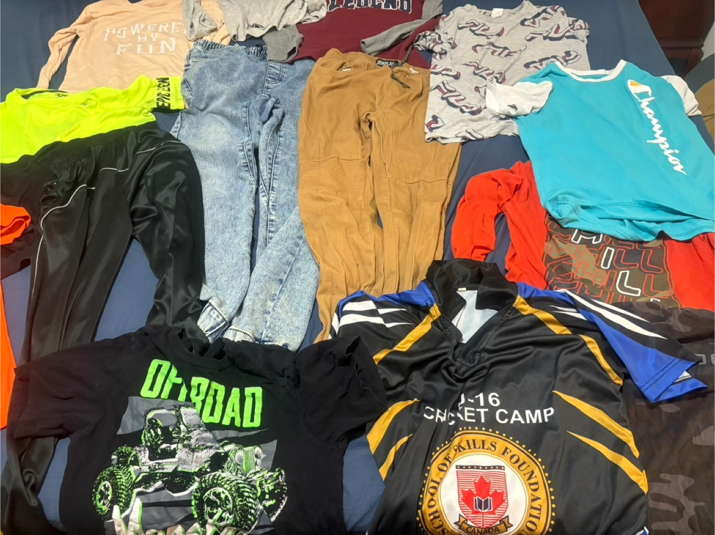Selling a bundle of boys' clothing featuring brands like Urban Heritage and Jamplay! The bundle includes a variety of shirts, pants, and athletic wear. Sizes are 14-16 Great for everyday wear!pick up only ( 11 t-shirts and 1 jeans, 2 pants)