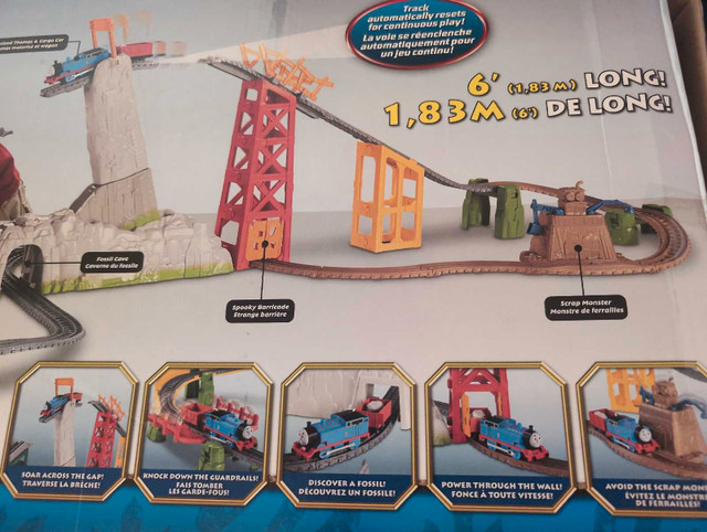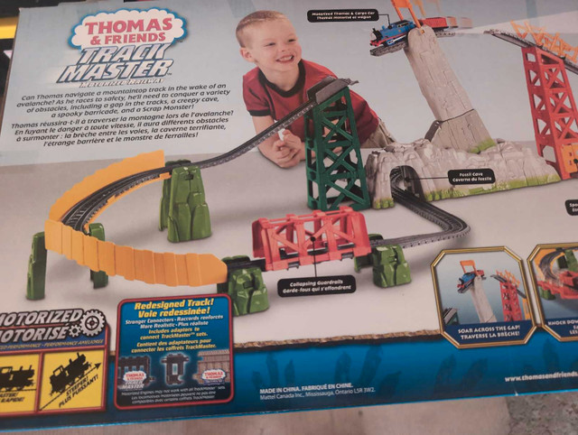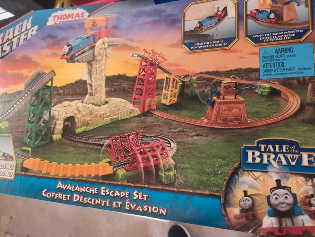 Thomas & Friends TrackMaster Avalanche Escape Set is ready for a new home! It's a motorized railway set that includes a spooky barricade, fossil cave, and a scrap monster. The track automatically resets for continuous play. It's 6' (1.83m) long! Tracks only!