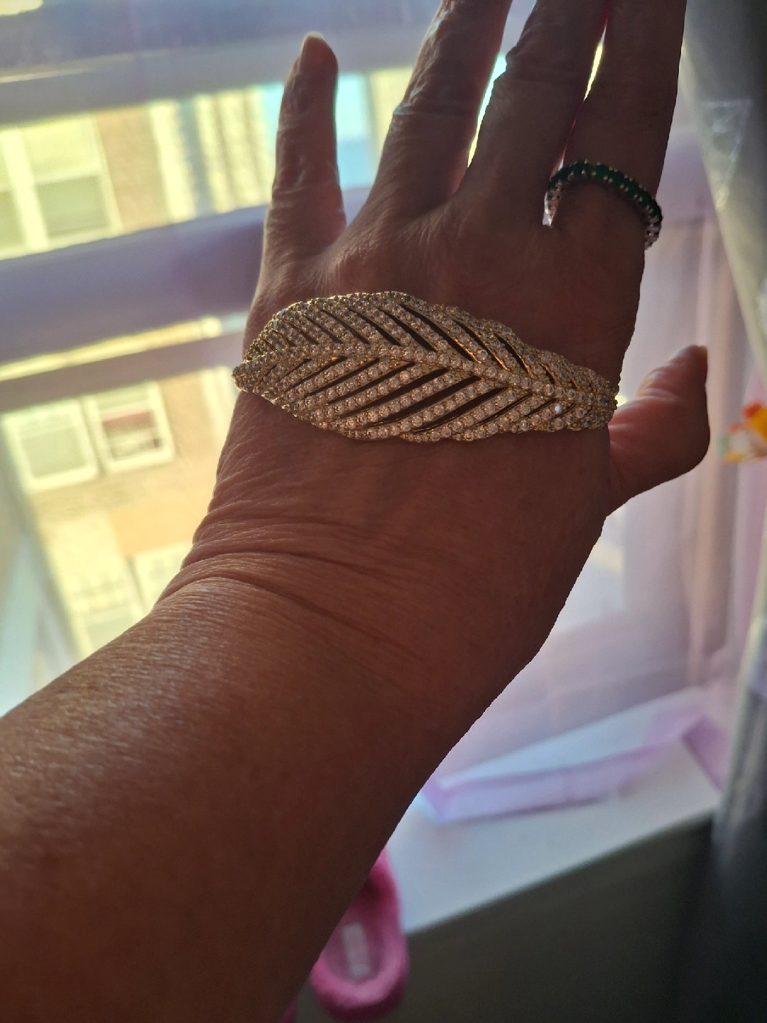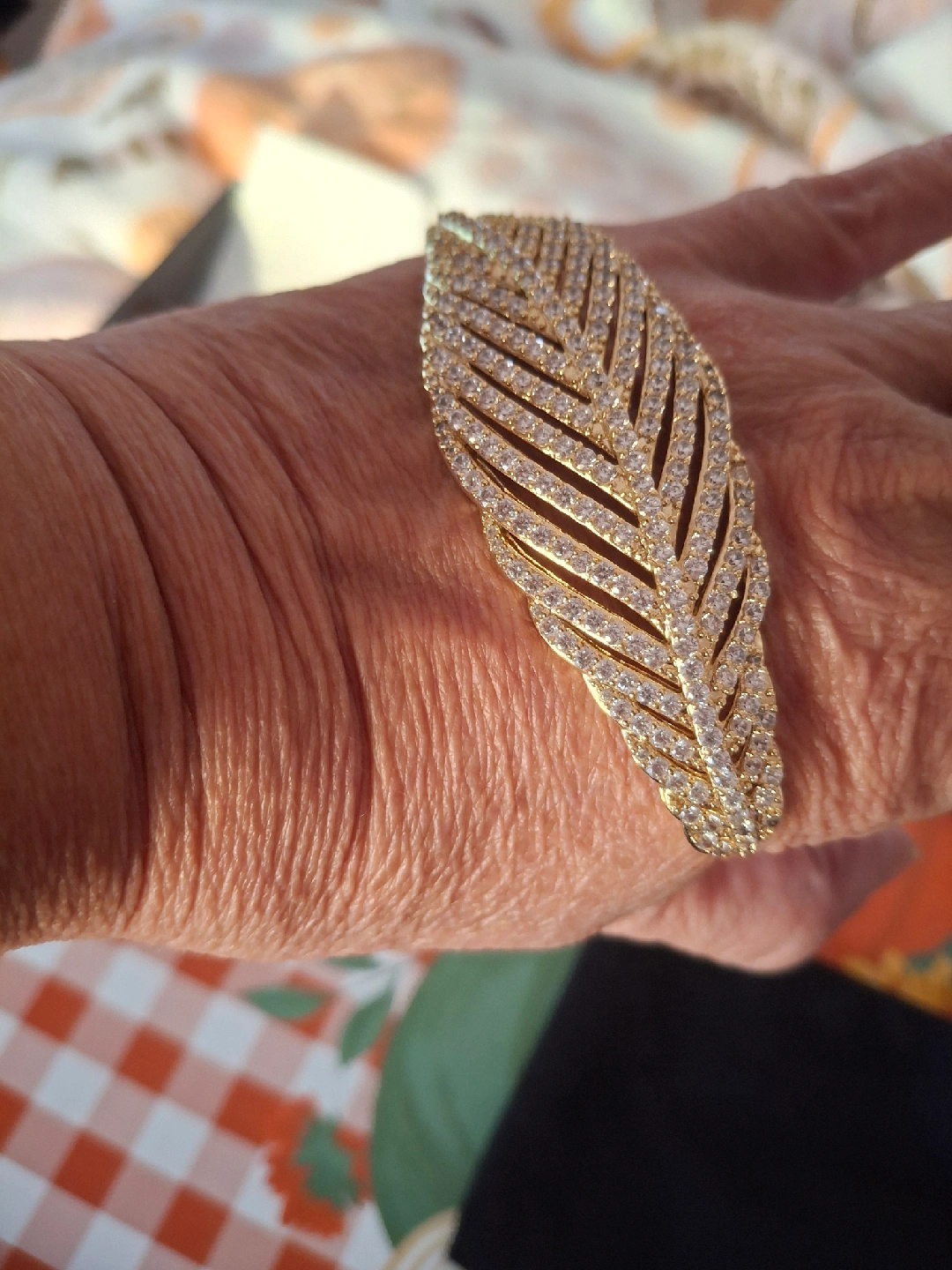 🥕🥕🥕🥕Selling a beautiful gold leaf bracelet by the late Roberto Faraone Mennella Italian Jewelry Designer. The design is intricate and eye-catching, perfect for adding a touch of elegance to any outfit and a collectable. Asking $150. It is gold plated with high end cubic zirconia stones. Size small/medium. Perfect for a seasonal festivities or events.
