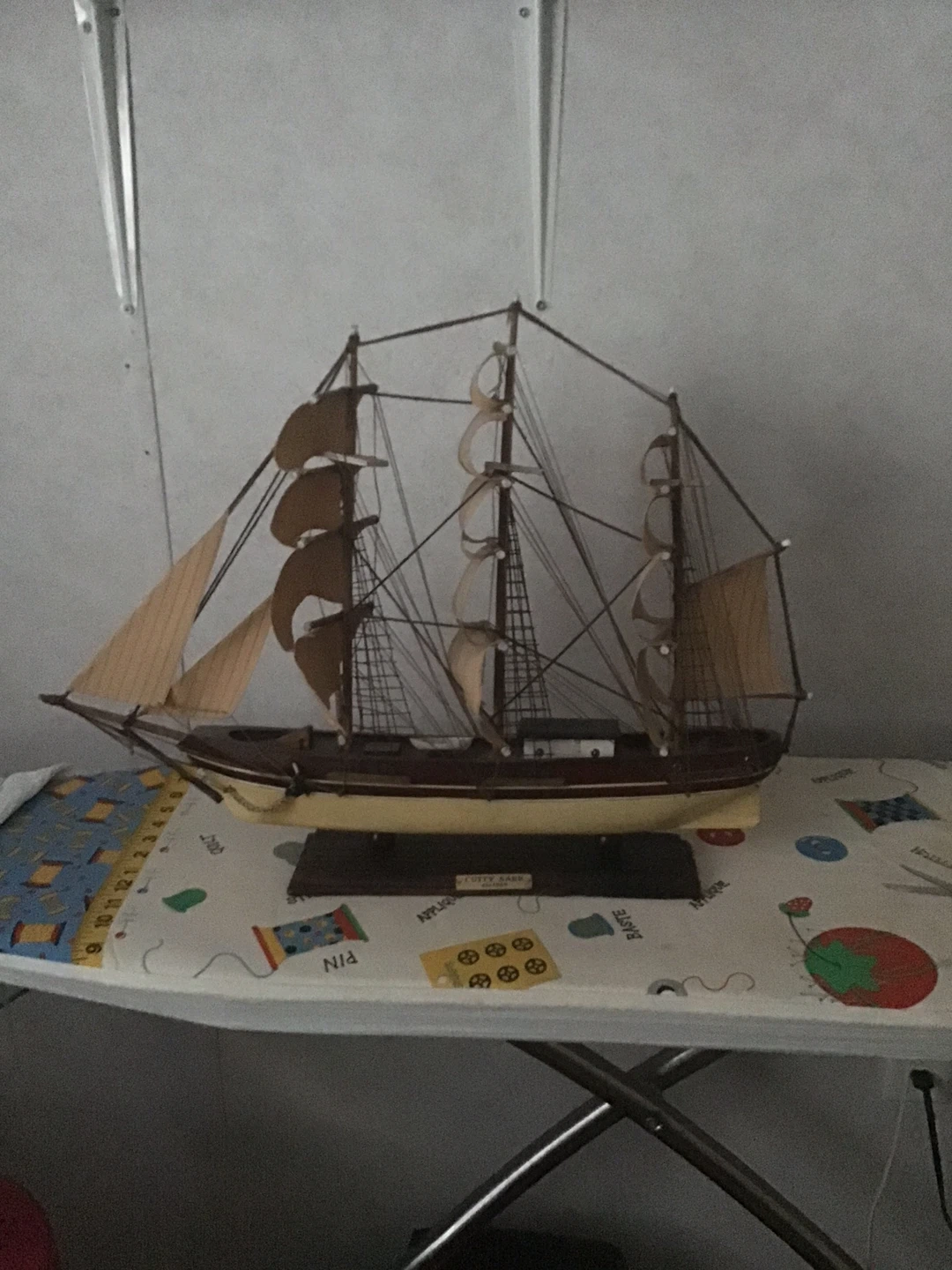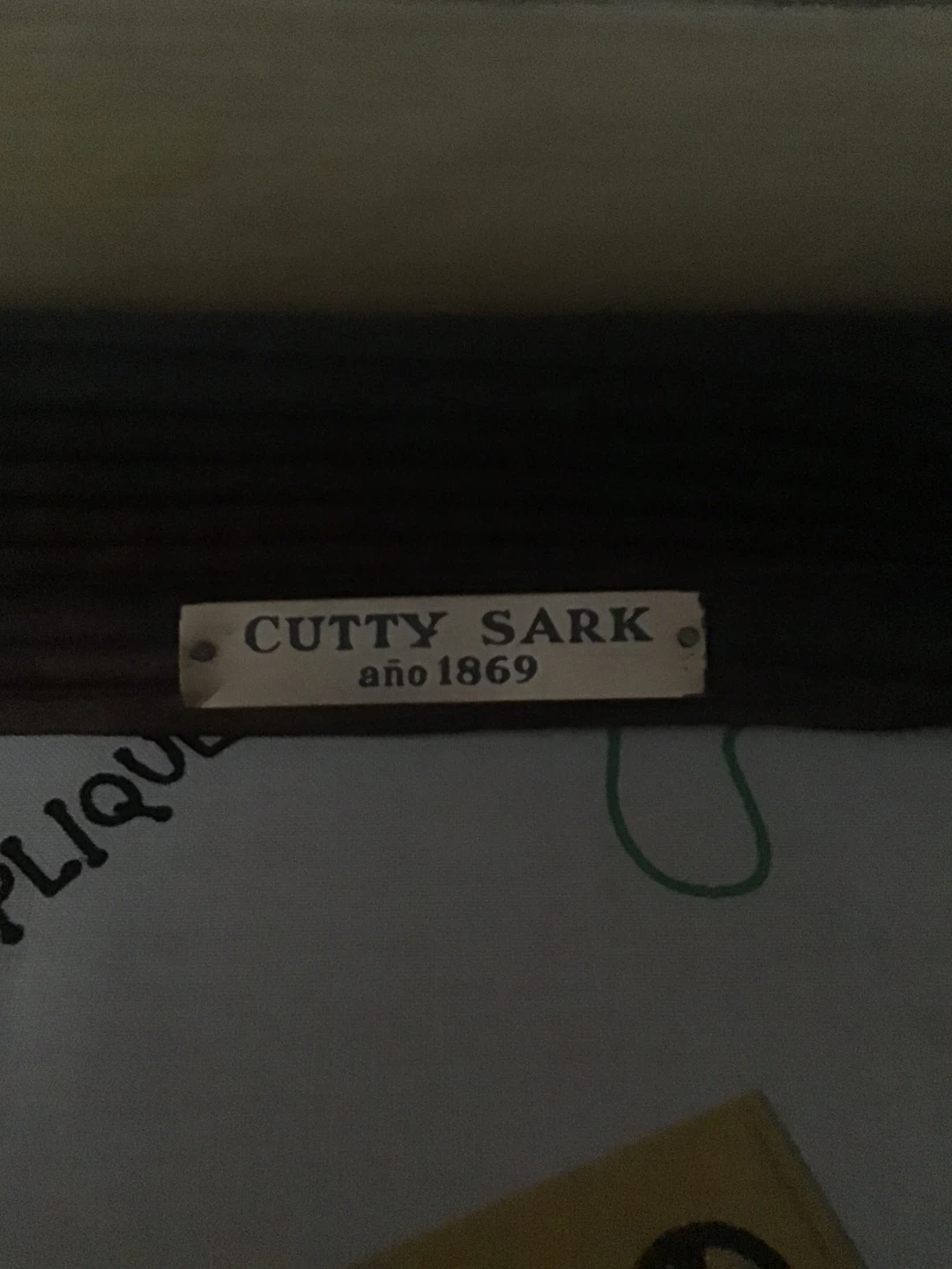 Selling a Cutty Sark model ship. The label says 'año 1869'. It's a beautiful display piece for any nautical enthusiast or collector