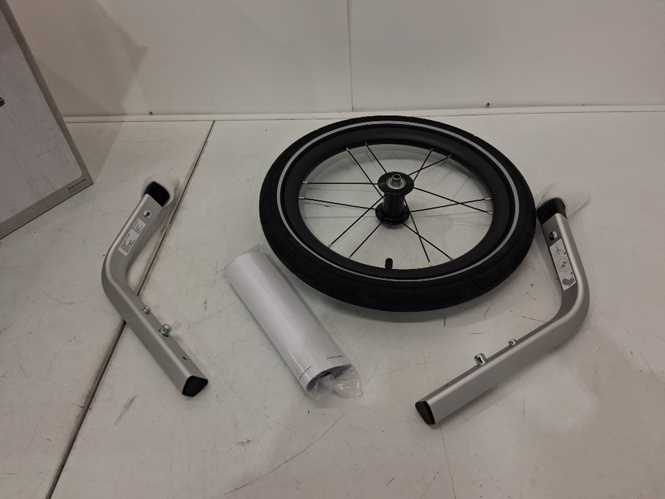 Get ready to roll with this Thule Chariot 2 jogging kit! Designed for the double stroller and featuring a 12-inch wheel, model number 20201302, this kit is in excellent condition. Now you can take your little ones on all your jogging adventures.