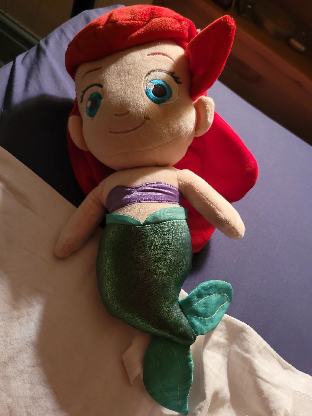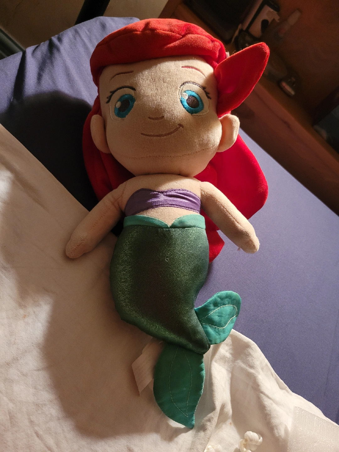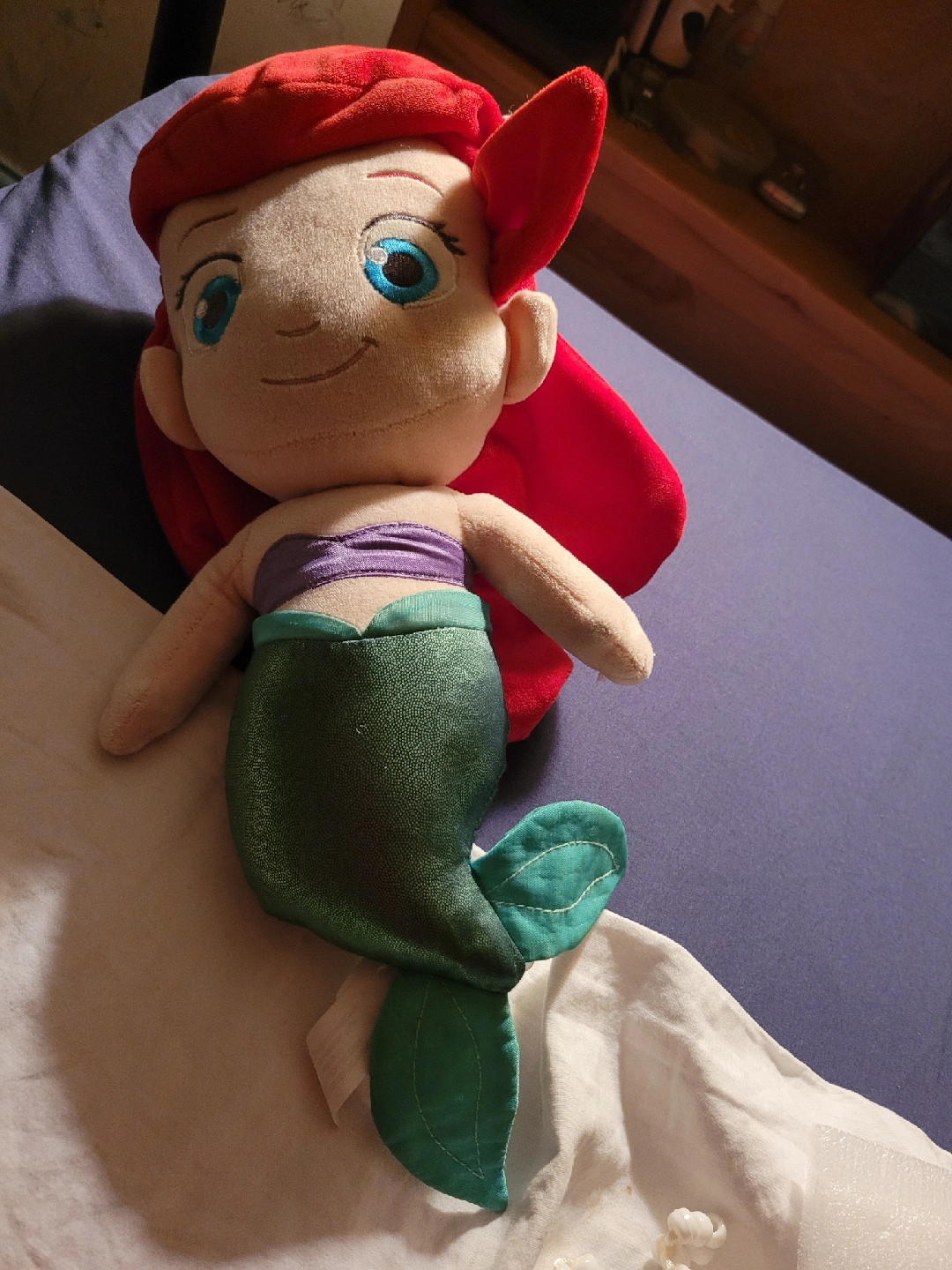 Ariel plush doll in good condition! Perfect for any Disney fan or collector. She has a vibrant red hair and a sparkly green tail. Not a tiny toy.
