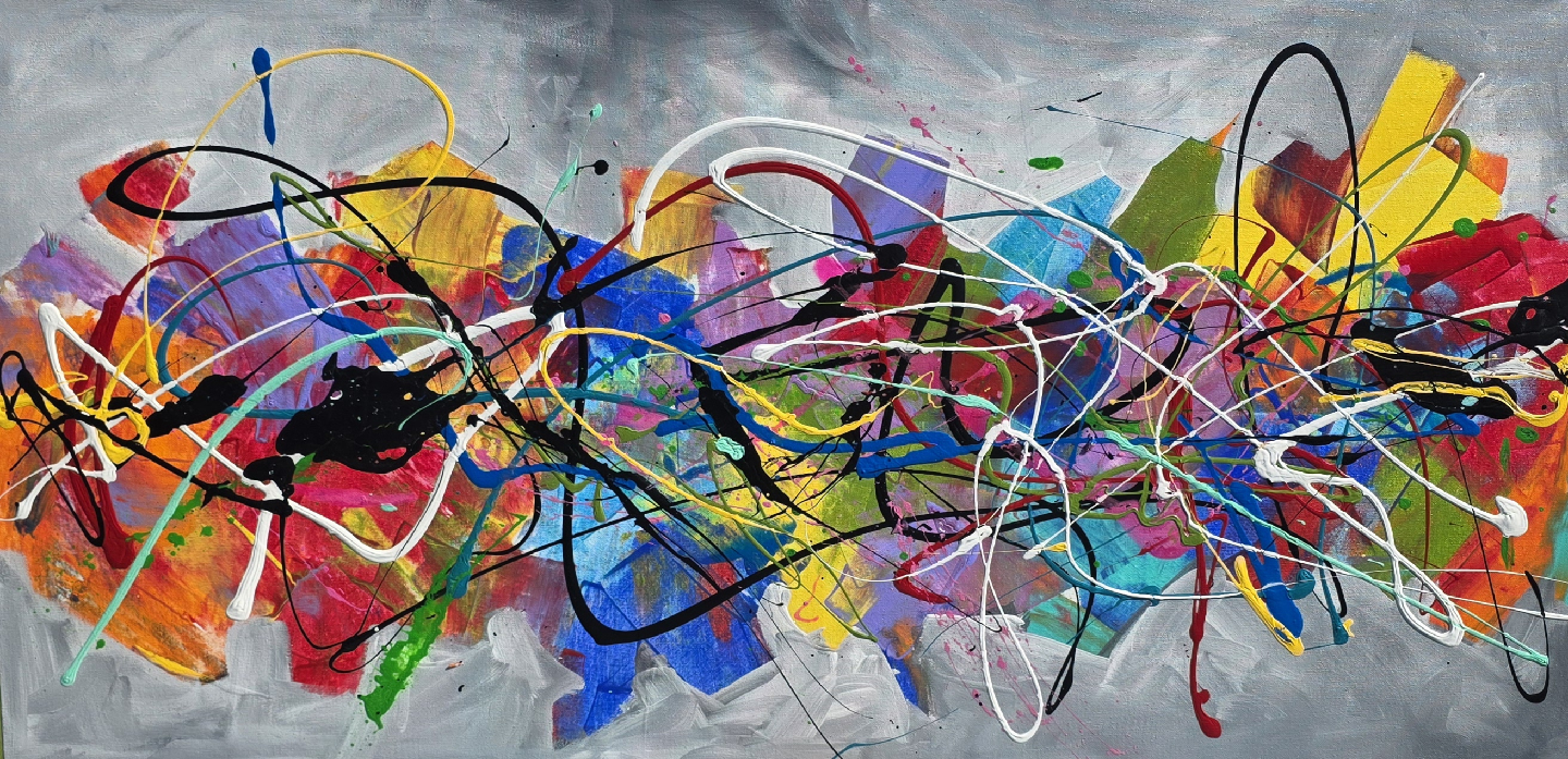 Zara kader Abstract 48"x24 Acrylic on canvas with varnish protection Ready to hang to view more of my artwork go to my Instagram zkart2021 Custom order painting available Abstract modern cubist landscape cityscape flowers