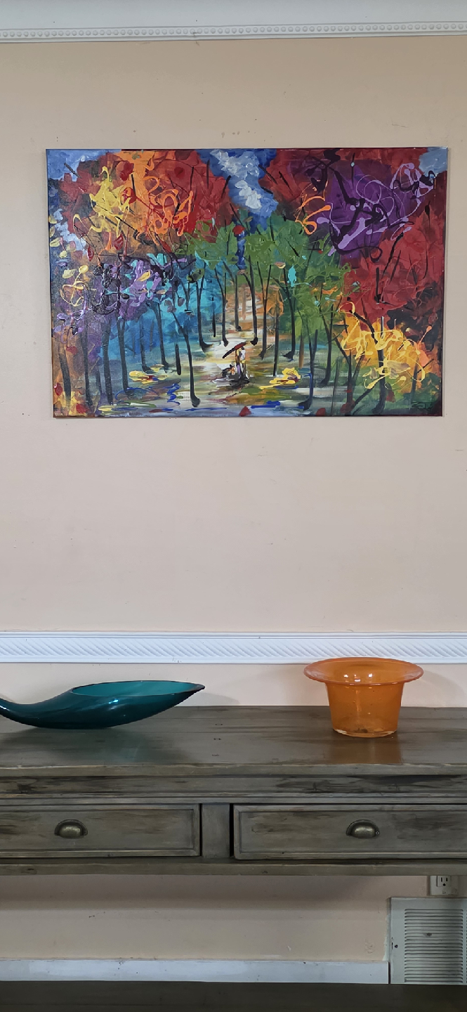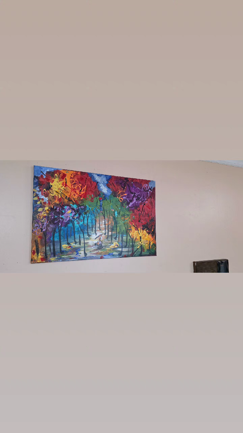 original hand-painted painting by local artist Stanley Park 36"x24 by Zara kader Acrylic on canvas with varnish protection Ready to hang to view more of my artwork go to my Instagram zkart2021 Custom order painting available Abstract modern cubist landscape cityscape flowers .