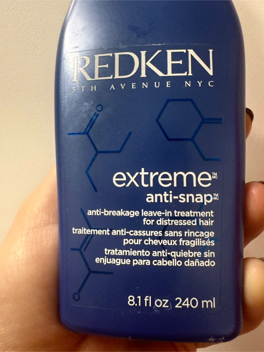 Selling a bottle of Redken Extreme Anti-Snap leave-in treatment for distressed hair! This anti-breakage treatment comes in a 8.1 fl oz (240 ml) bottle. It's perfect for helping to keep your hair healthy and strong!