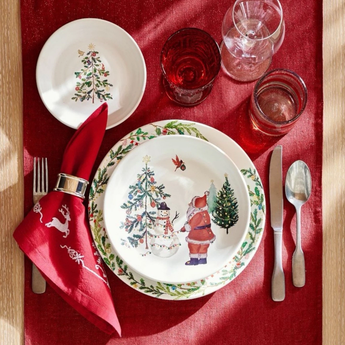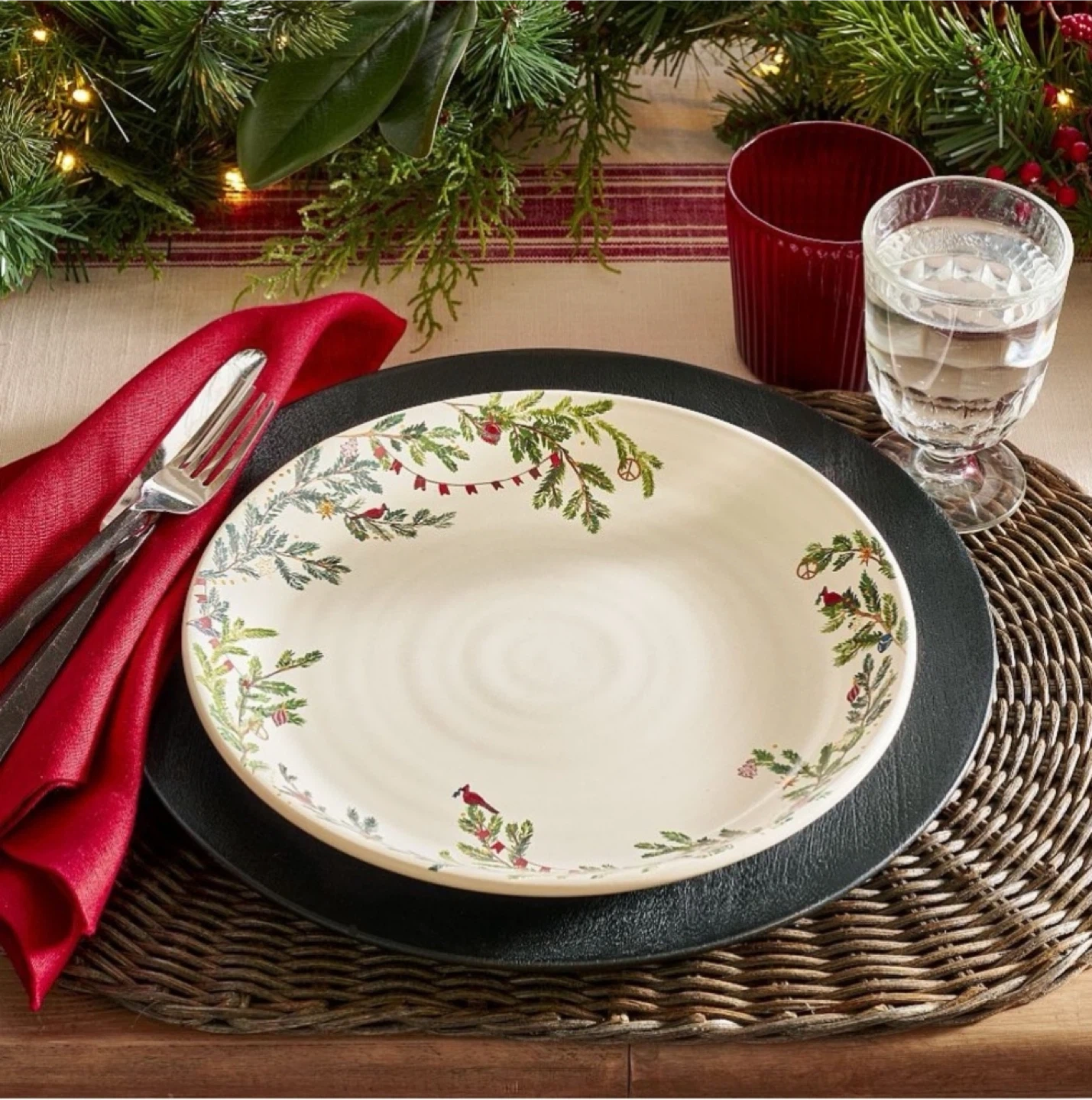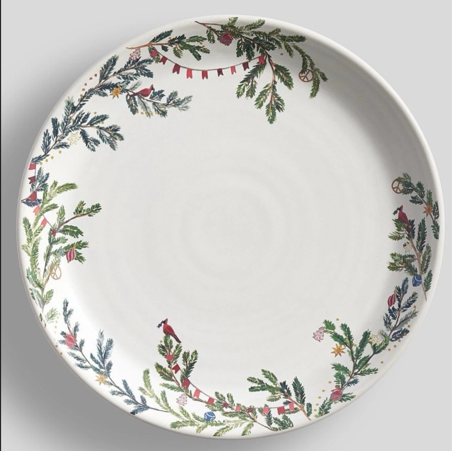 With the look of painted watercolour, these stoneware plates capture the nostalgia of the holiday countryside. Detailed without being busy, they have a sweet, subtle nature that mixes and matches with other pieces for a festive table setting. The bonus: a beautiful hat box carrier great for gifting or storage.