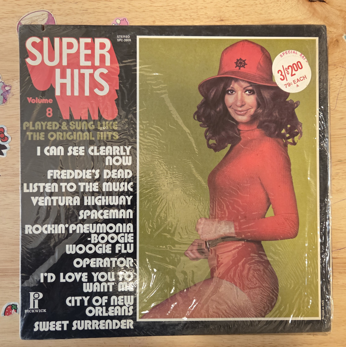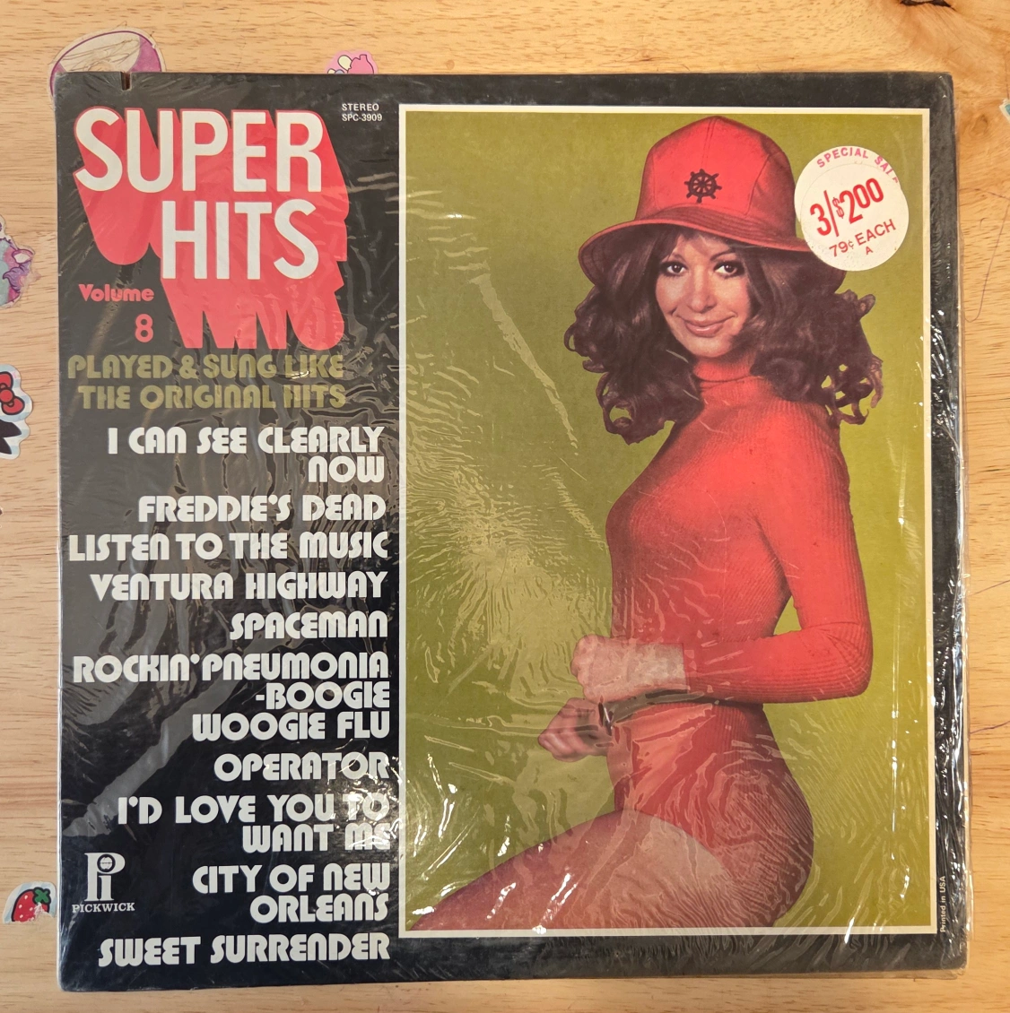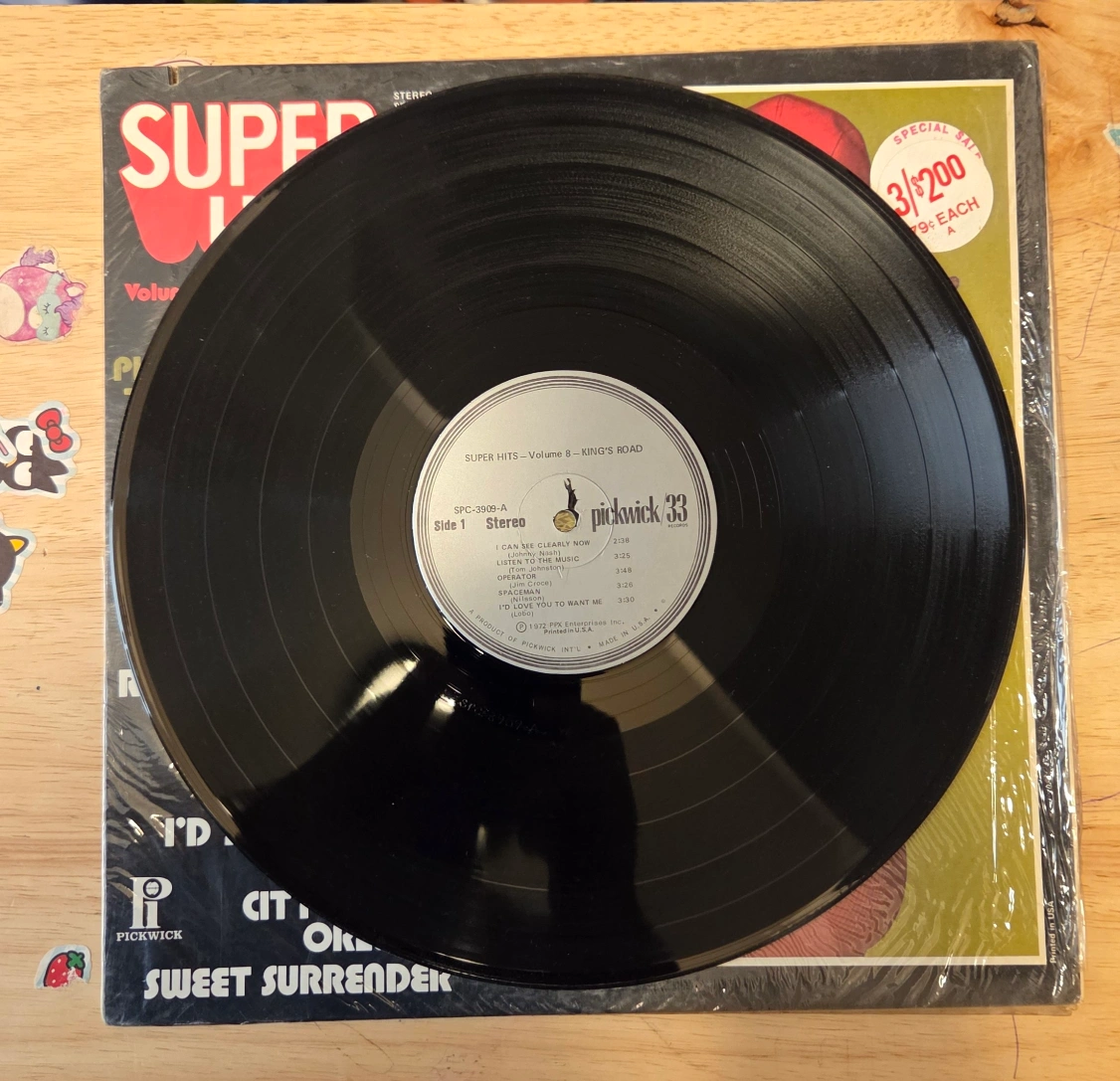 Selling a vintage vinyl record, Super Hits Volume 8. This record includes hits like 'I Can See Clearly Now,' 'Listen to the Music,' and 'City of New Orleans'. A great addition for any vinyl collector! MEET UP ONLY AND CASH ONLY THANKS