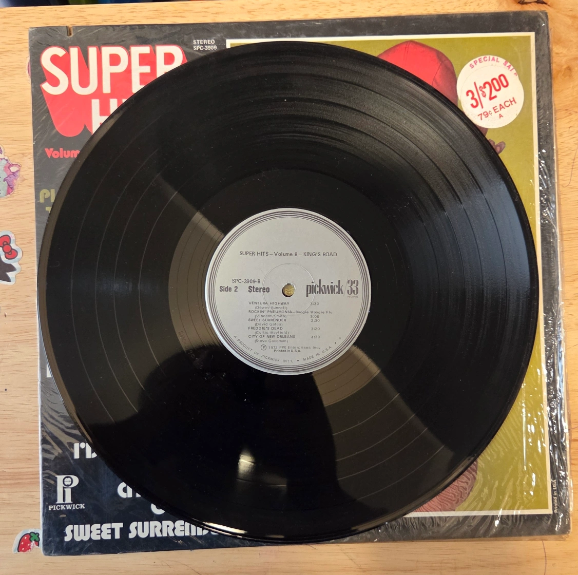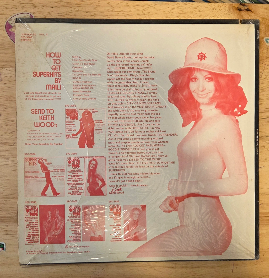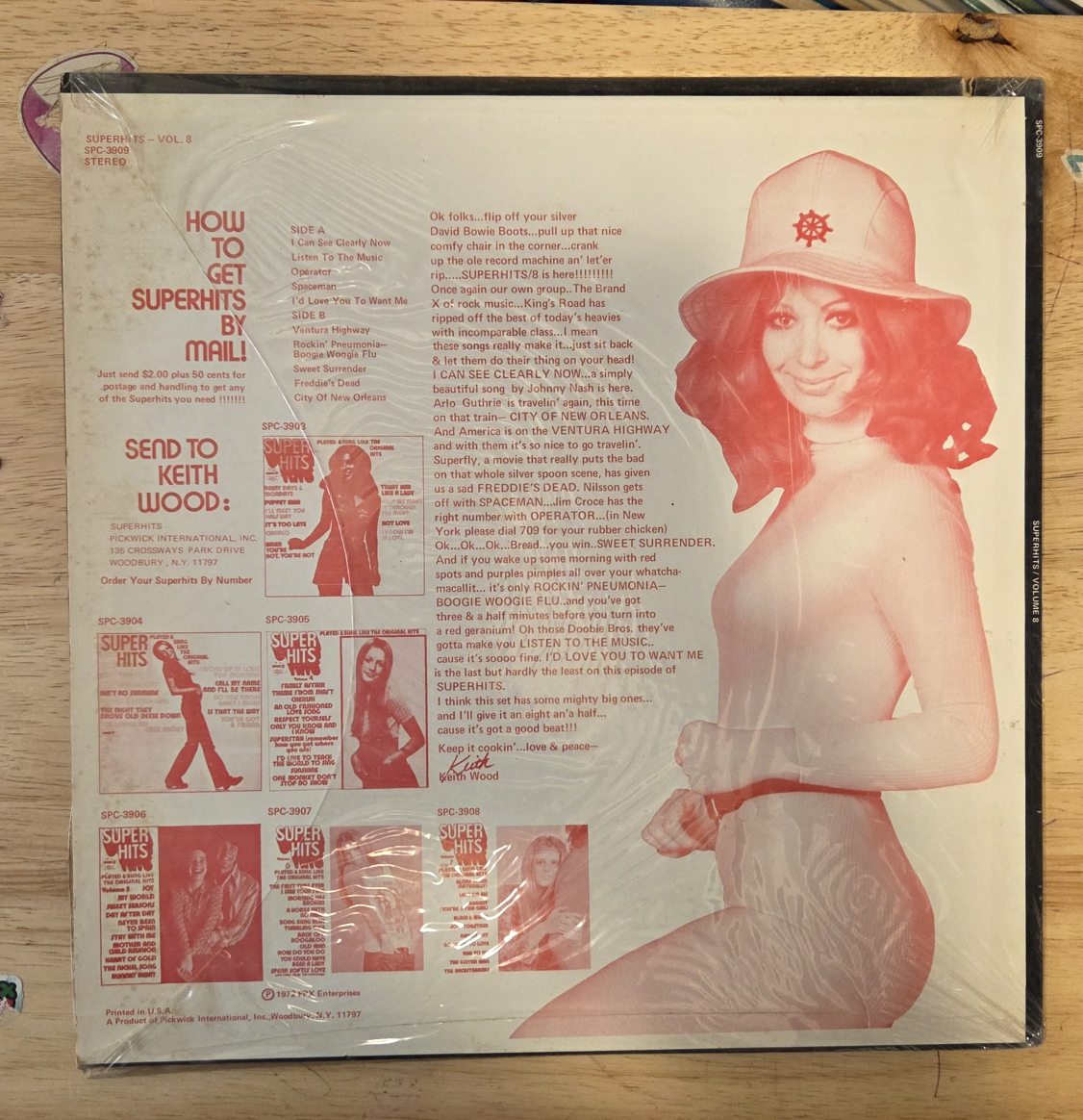 Selling a vintage vinyl record, Super Hits Volume 8. This record includes hits like 'I Can See Clearly Now,' 'Listen to the Music,' and 'City of New Orleans'. A great addition for any vinyl collector! MEET UP ONLY AND CASH ONLY THANKS