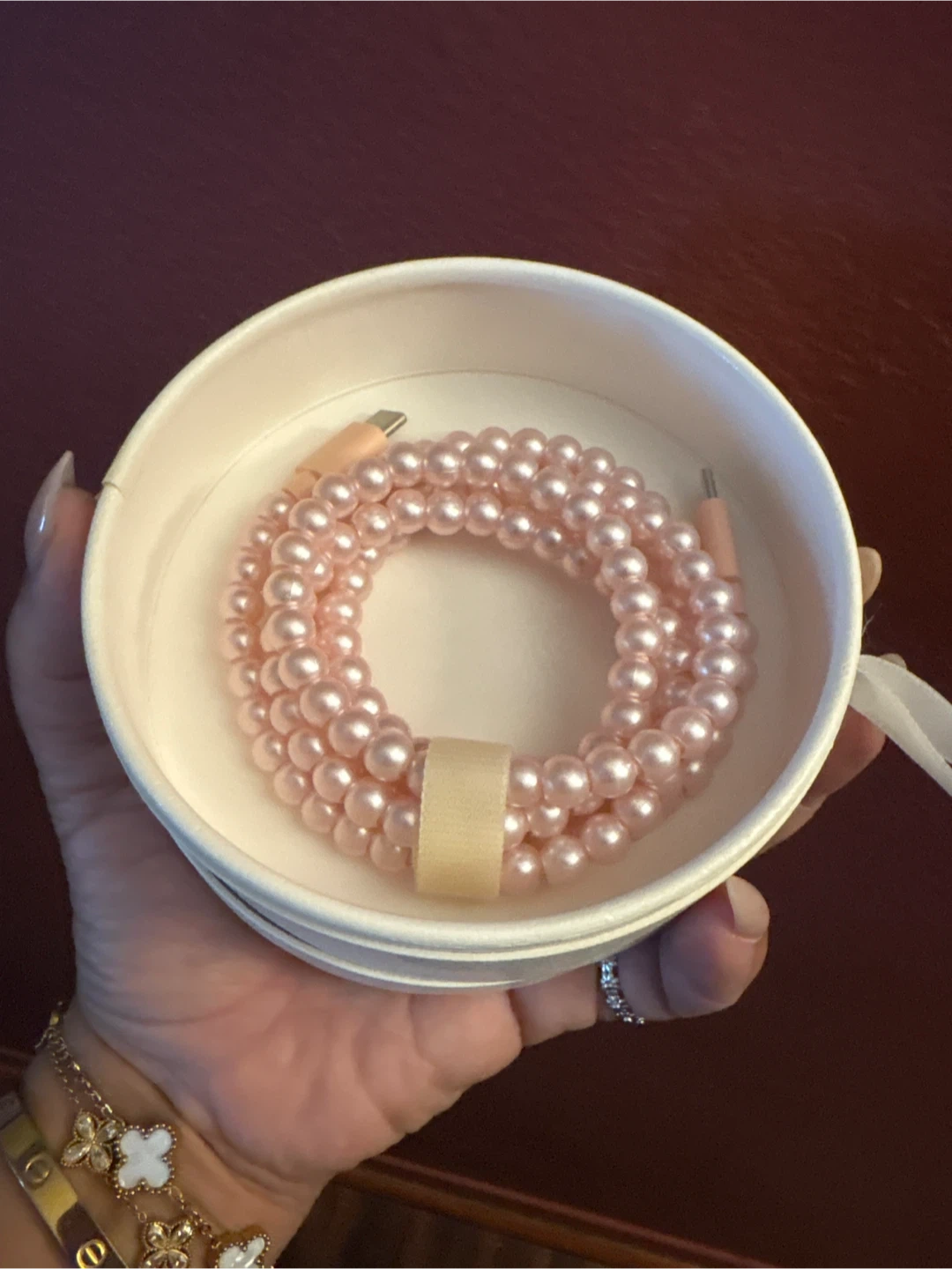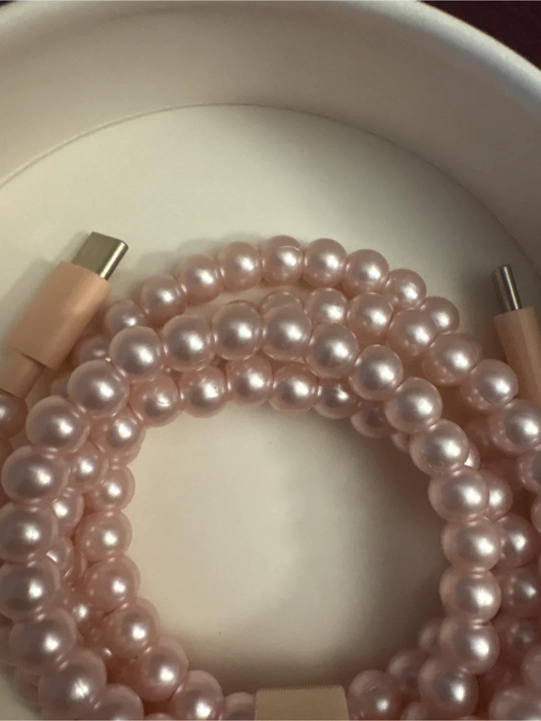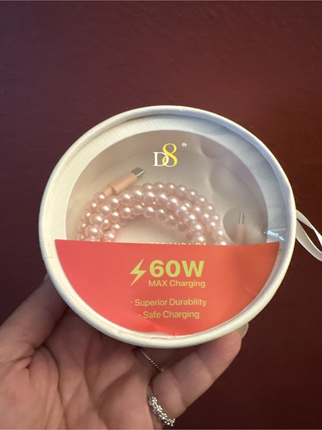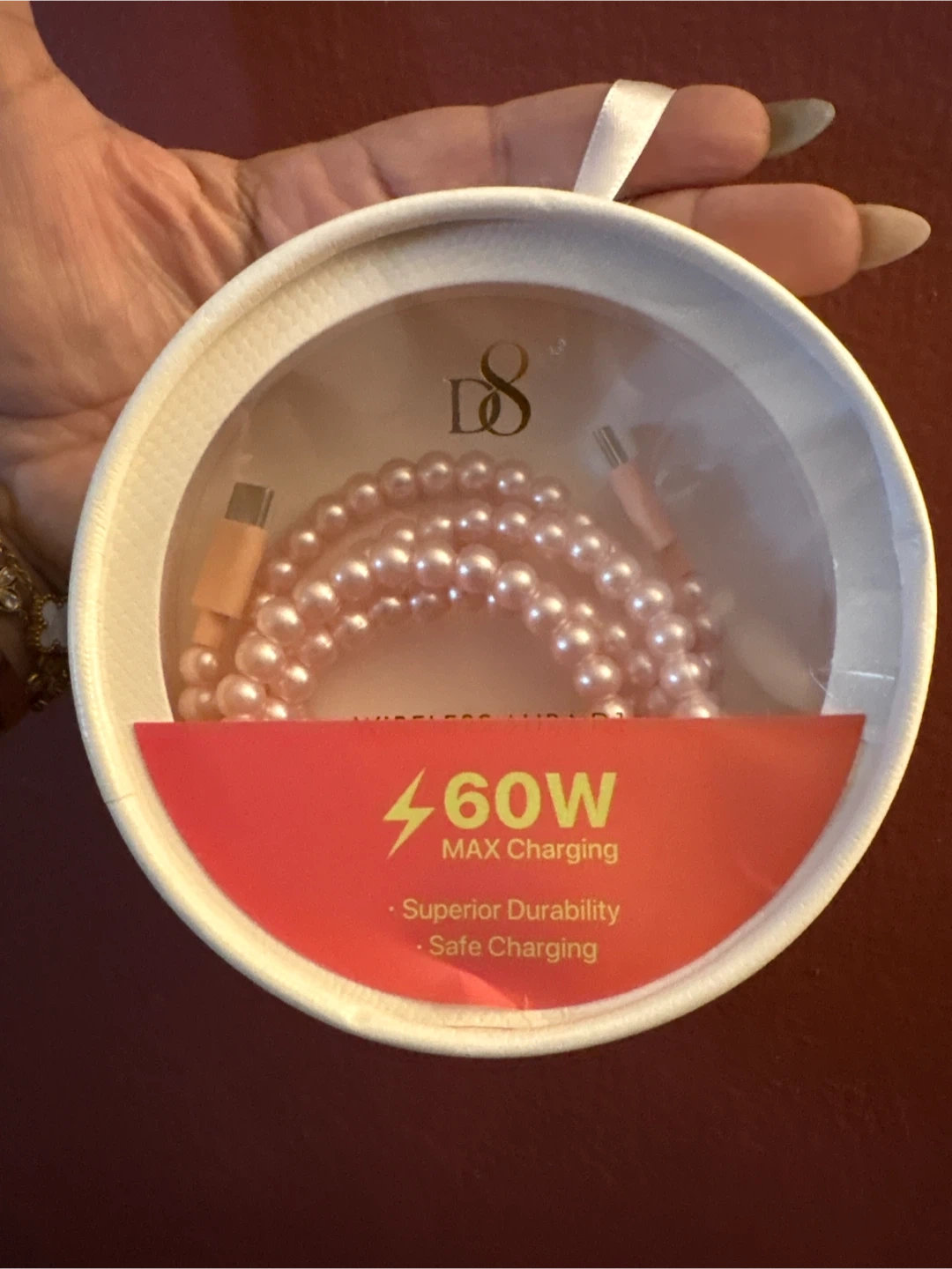 Here's a stylish and functional DS8 USB-C charging cable! It's a unique pearl design with a 60W max charging capacity. It's also designed for superior durability and safe charging. Comes with its original box! iPhone 16 and 17 versions