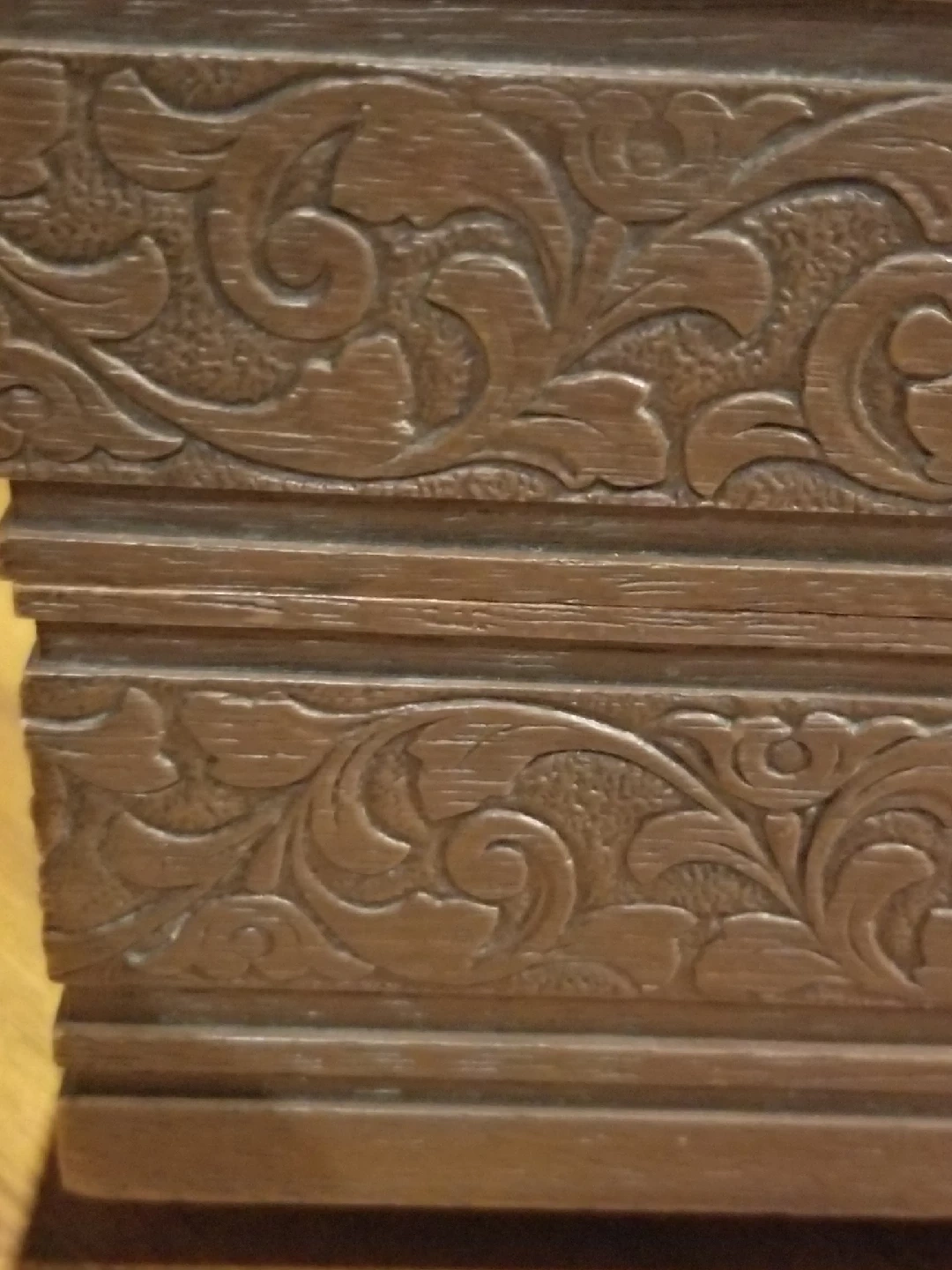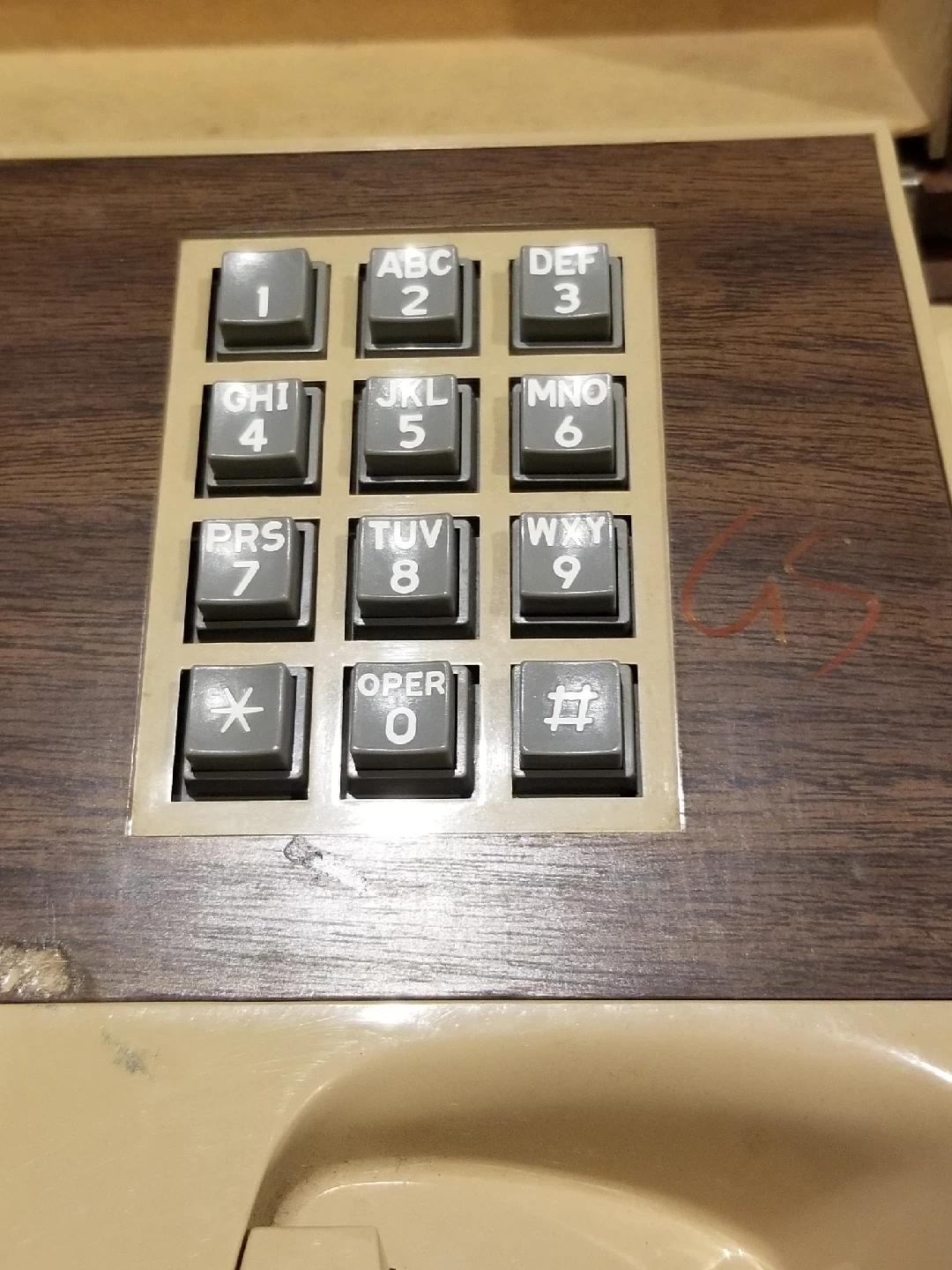 Selling a vintage DECO-TEL personal telephone, complete with its original box! It's a unique piece with a classic design, perfect for adding a retro touch to your home or collection. The phone appears to be in good condition, and the box is beautifully detailed with wood grain and carved patterns