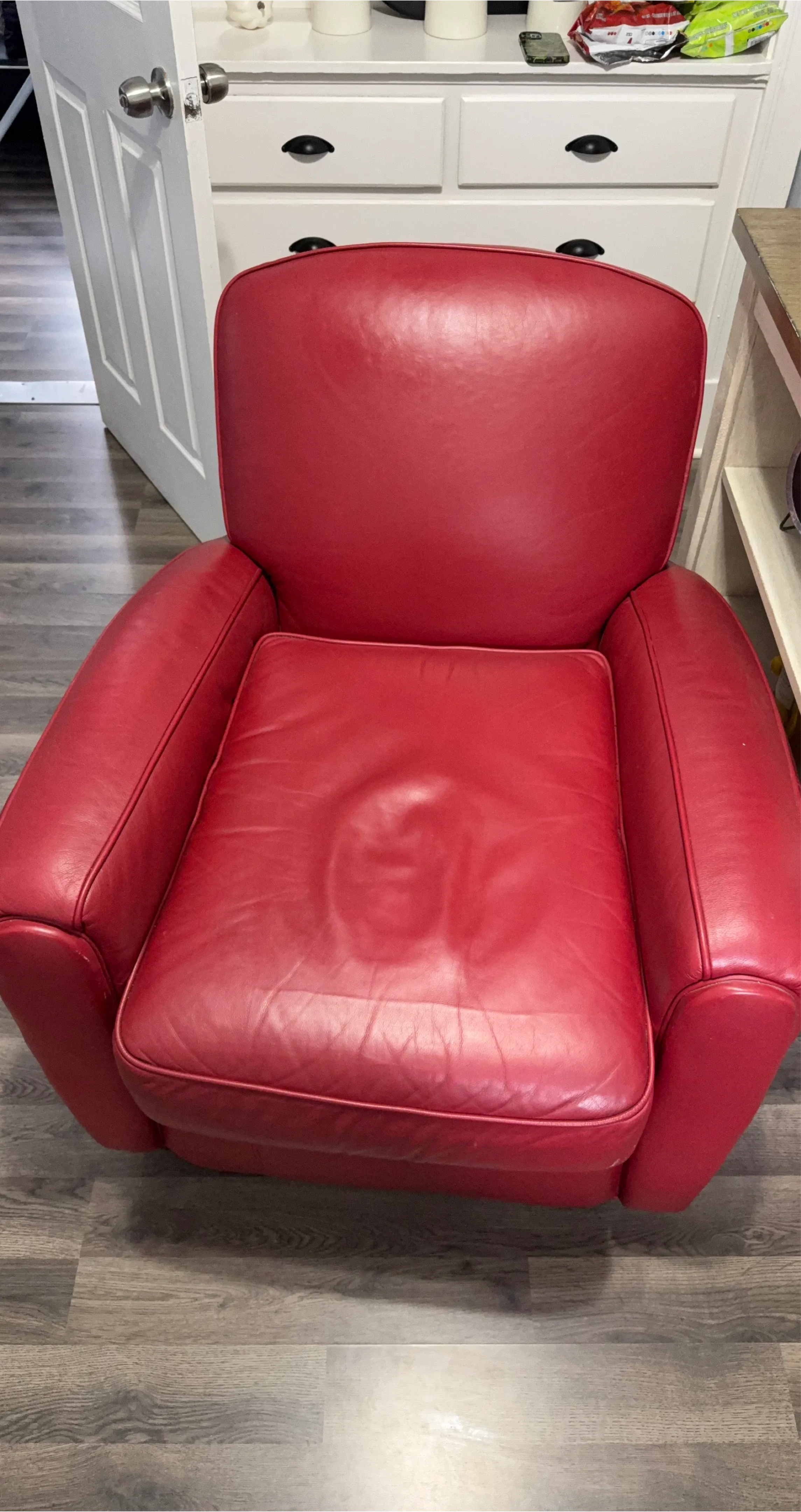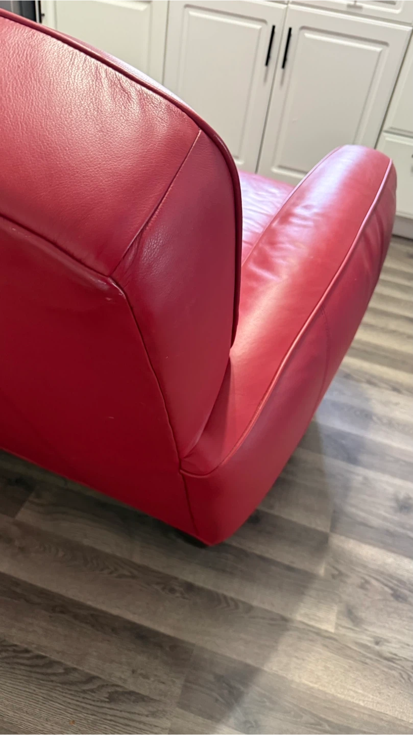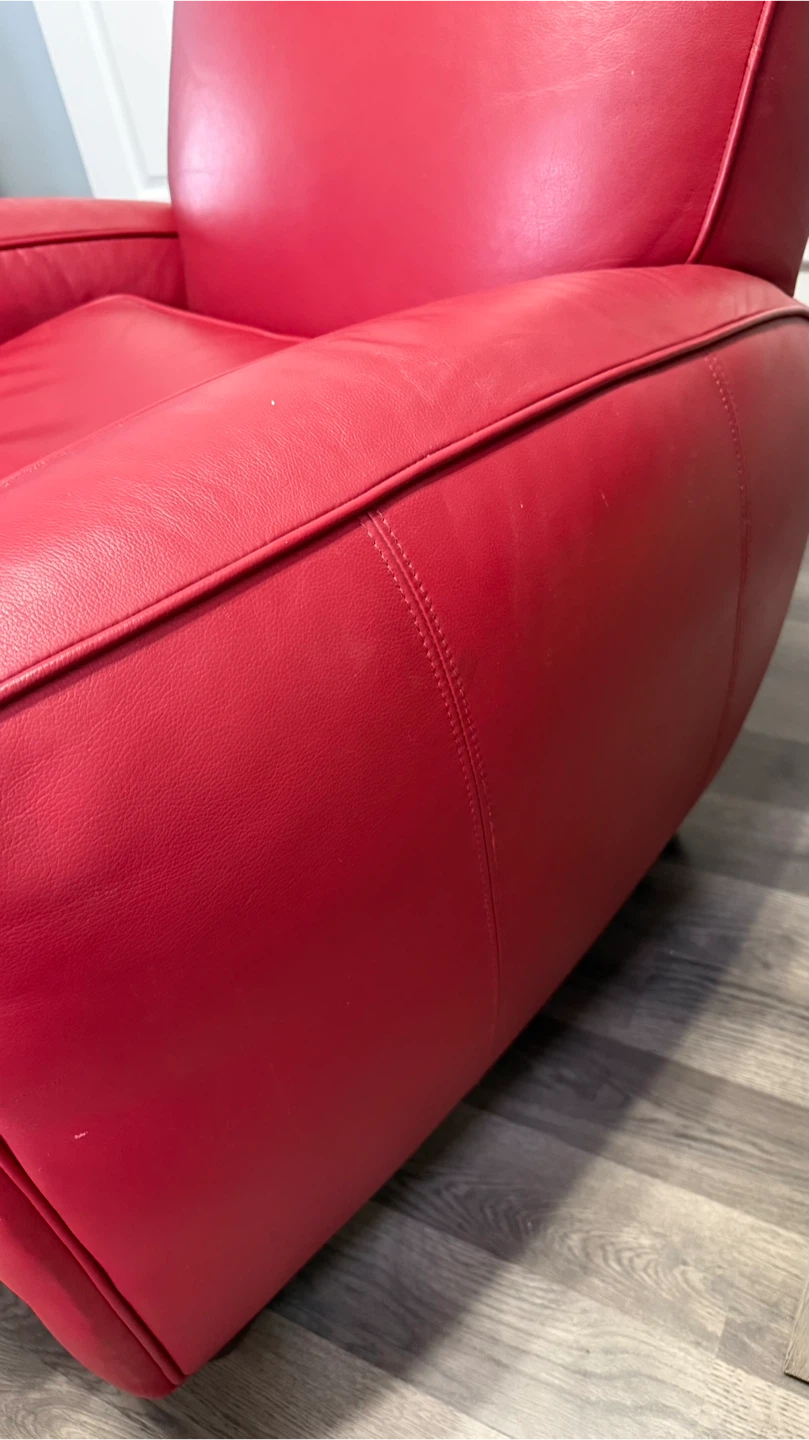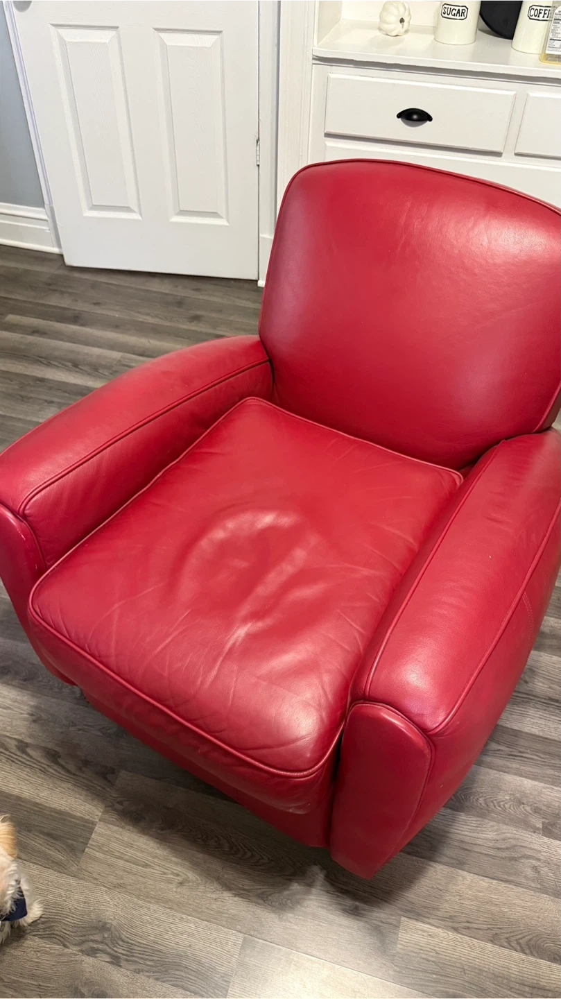 Selling a comfy red leather armchair! It's in good condition and would look great in any living room or study. The leather is soft and the chair is very supportive. Perfect for relaxing after a long day!