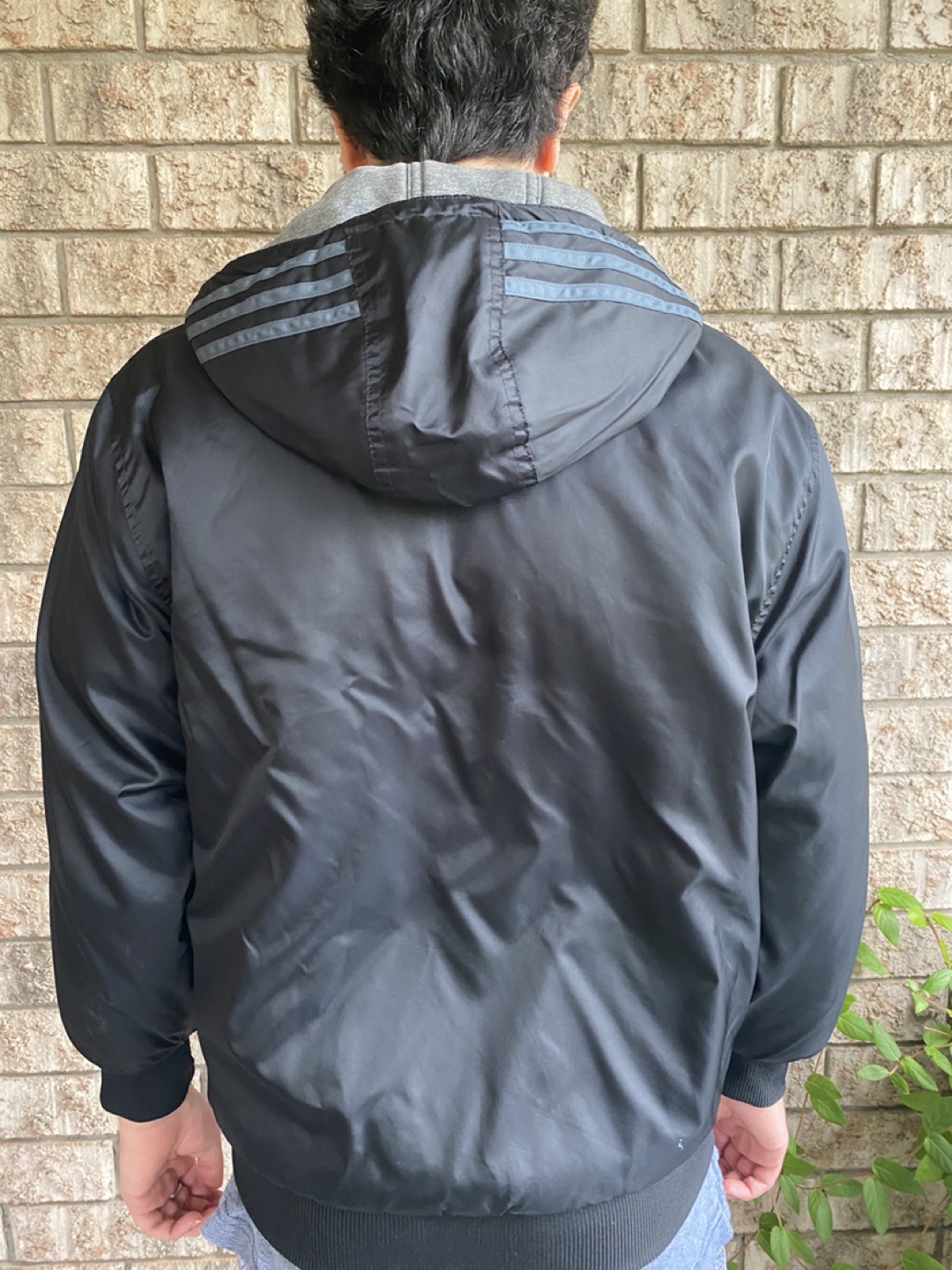 Size mens small, perfect condition. Two sides: waterproof shell, and soft sweater.