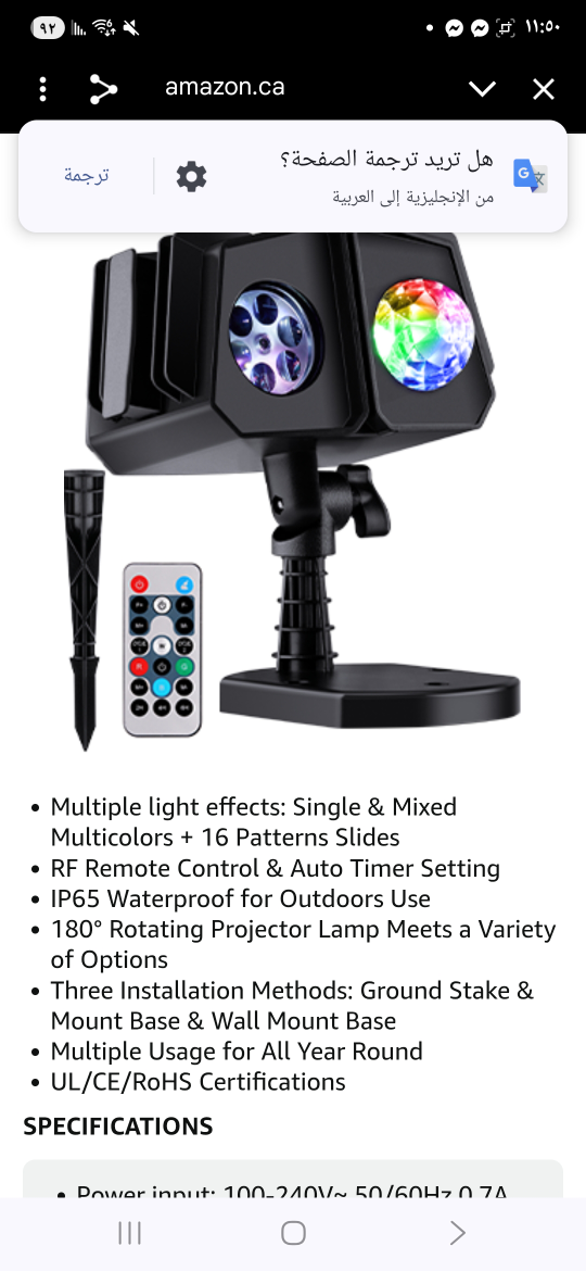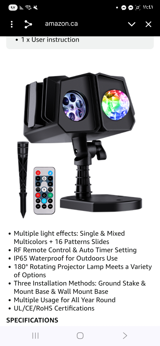 Christmas projector lights with multiple light effects, including single and mixed multicolors plus 16 pattern slides! It comes with an RF remote control and auto timer setting. It's also IP65 waterproof for outdoor use and has a 180° rotating projector lamp.
